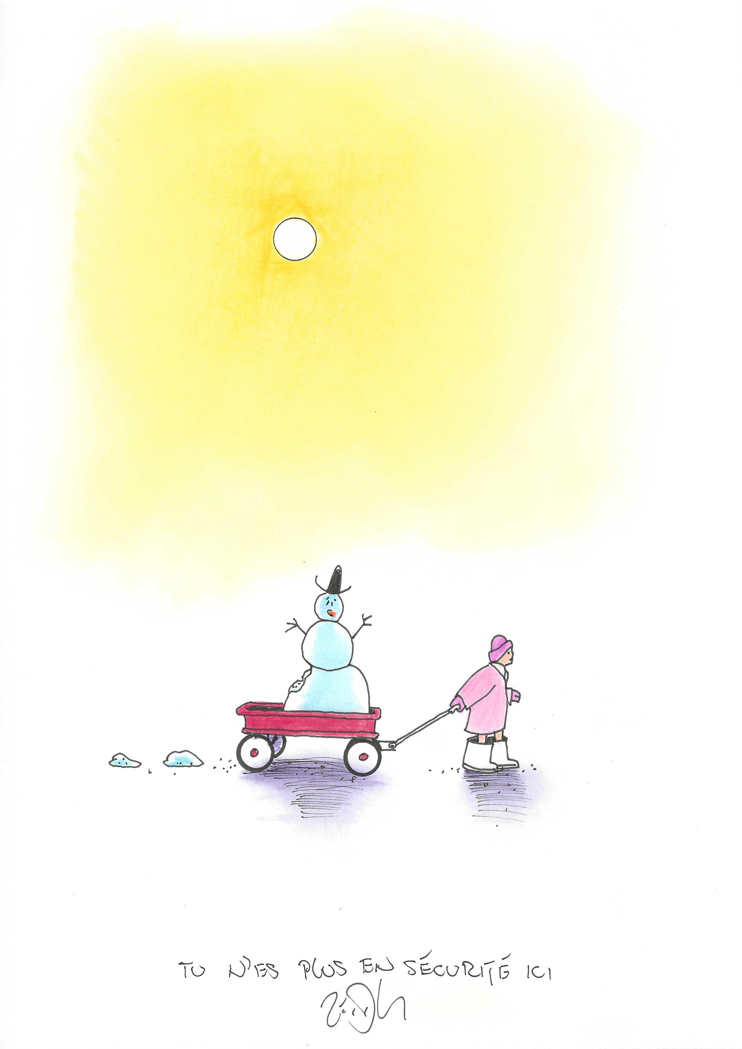 Drawing of the Day – 3152 – Dessin du jour « You’re not safe here anymore – Tu n’es plus en sécurité ici » Ink & colour on Paper – 8 x 12″ (21 x 30 cm) – Encre & couleurs sur Papier
