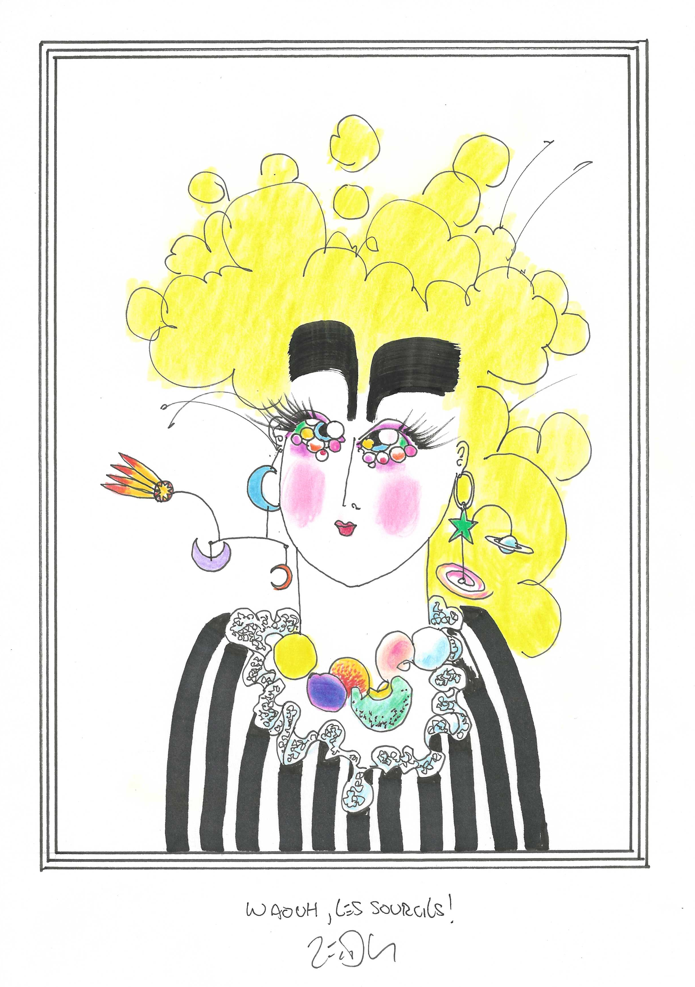 Drawing of the Day – 3154 – Dessin du jour « Best eyebrows ever ! – Waouh, les sourcils ! » Ink & colour on Paper – 8 x 12″ (21 x 30 cm) – Encre & couleurs sur Papier