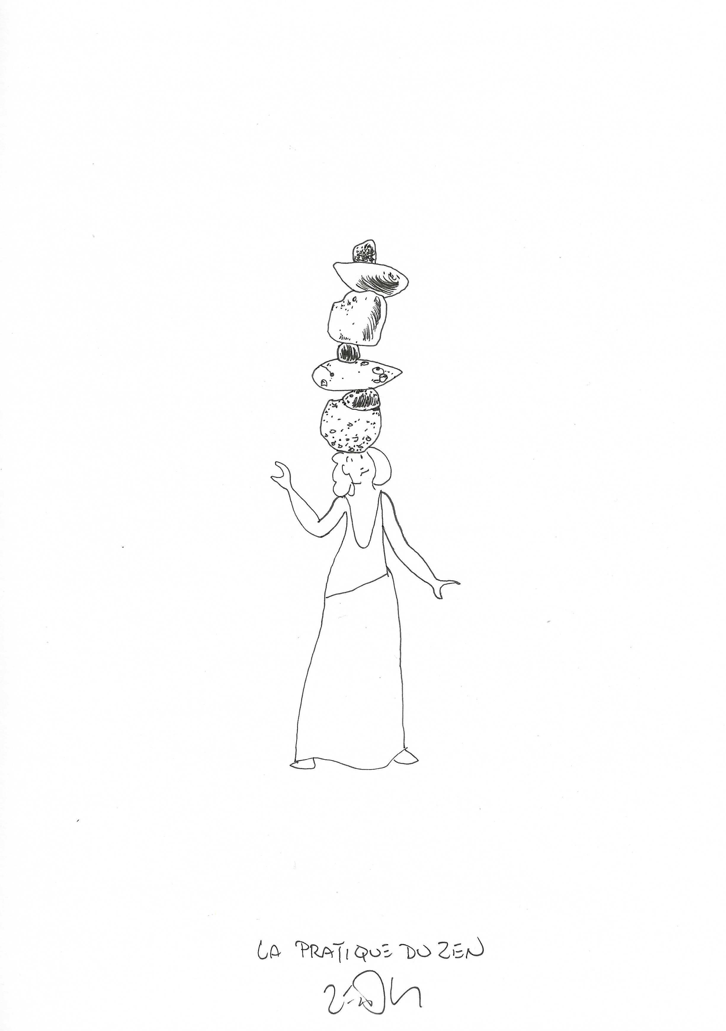 Drawing of the Day – 3117 – Dessin du jour « The practice of Zen – La pratique du Zen » Ink on Paper – 8 x 12″ (21 x 30 cm) – Encre sur Papier