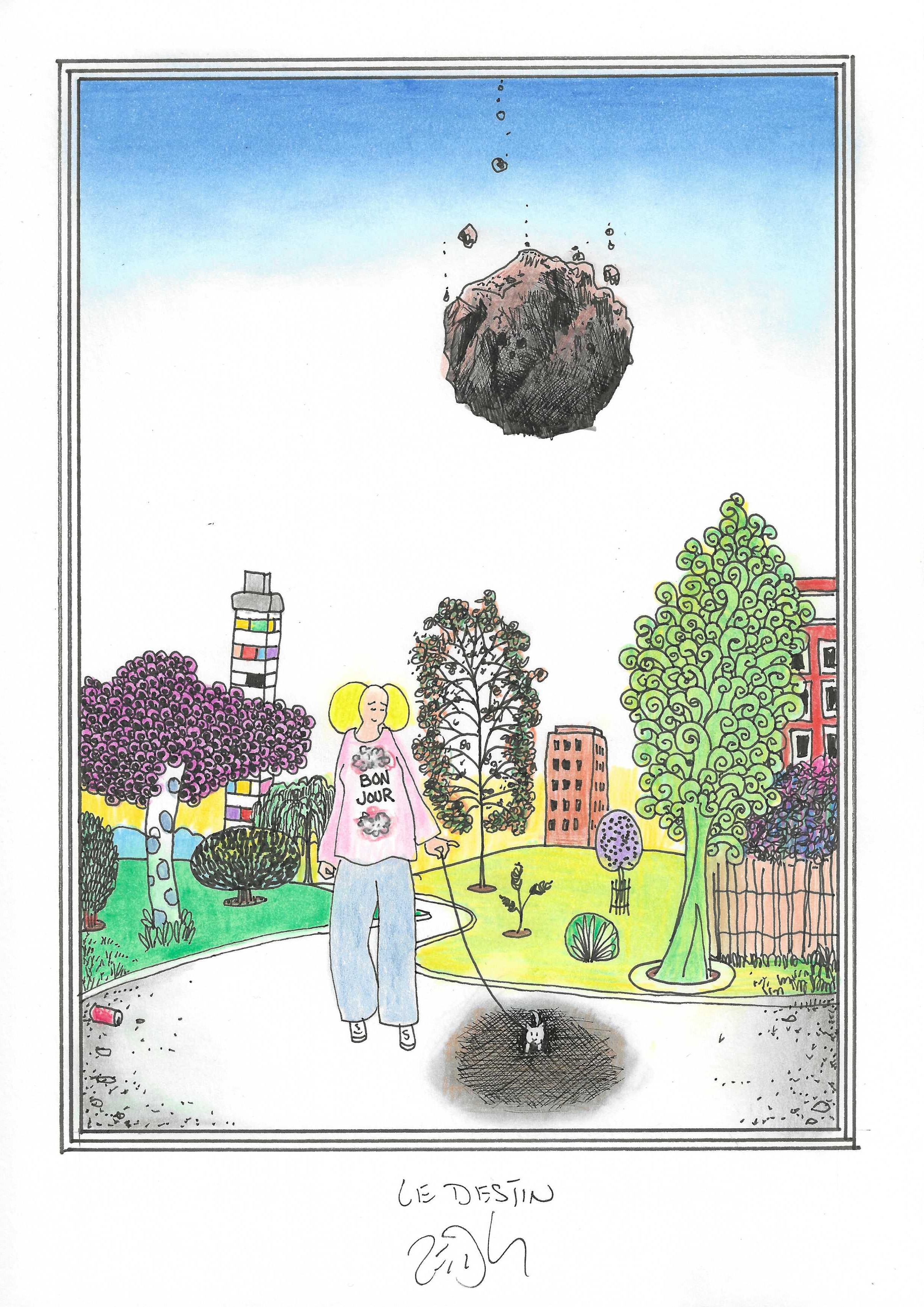 Drawing of the Day – 3039 – Dessin du jour « Fate – Le destin » Ink & colour on Paper – 8 x 12″ (21 x 30 cm) – Encre & couleurs sur Papier