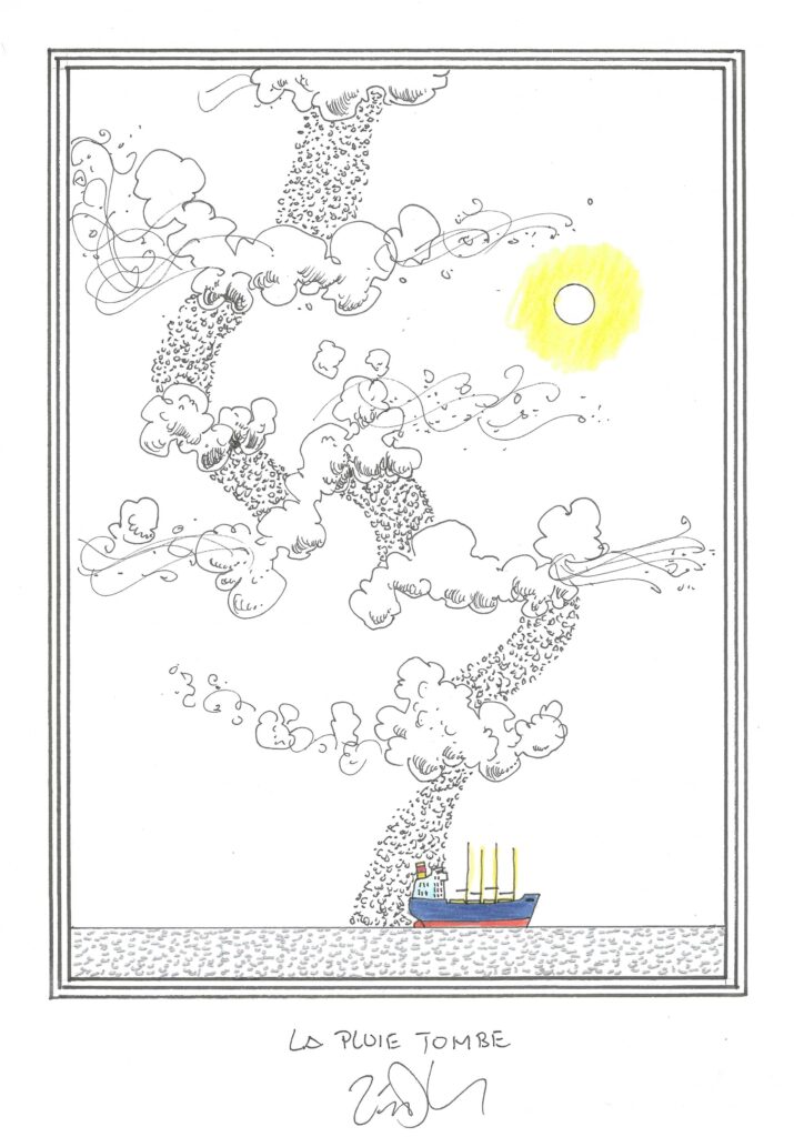 Drawing of the Day – 3653 – Dessin du jour « The rain falls – La pluie tombe » Ink & colour on Paper – 8 x 12″ (21 x 30 cm) – Encre & couleurs sur Papier