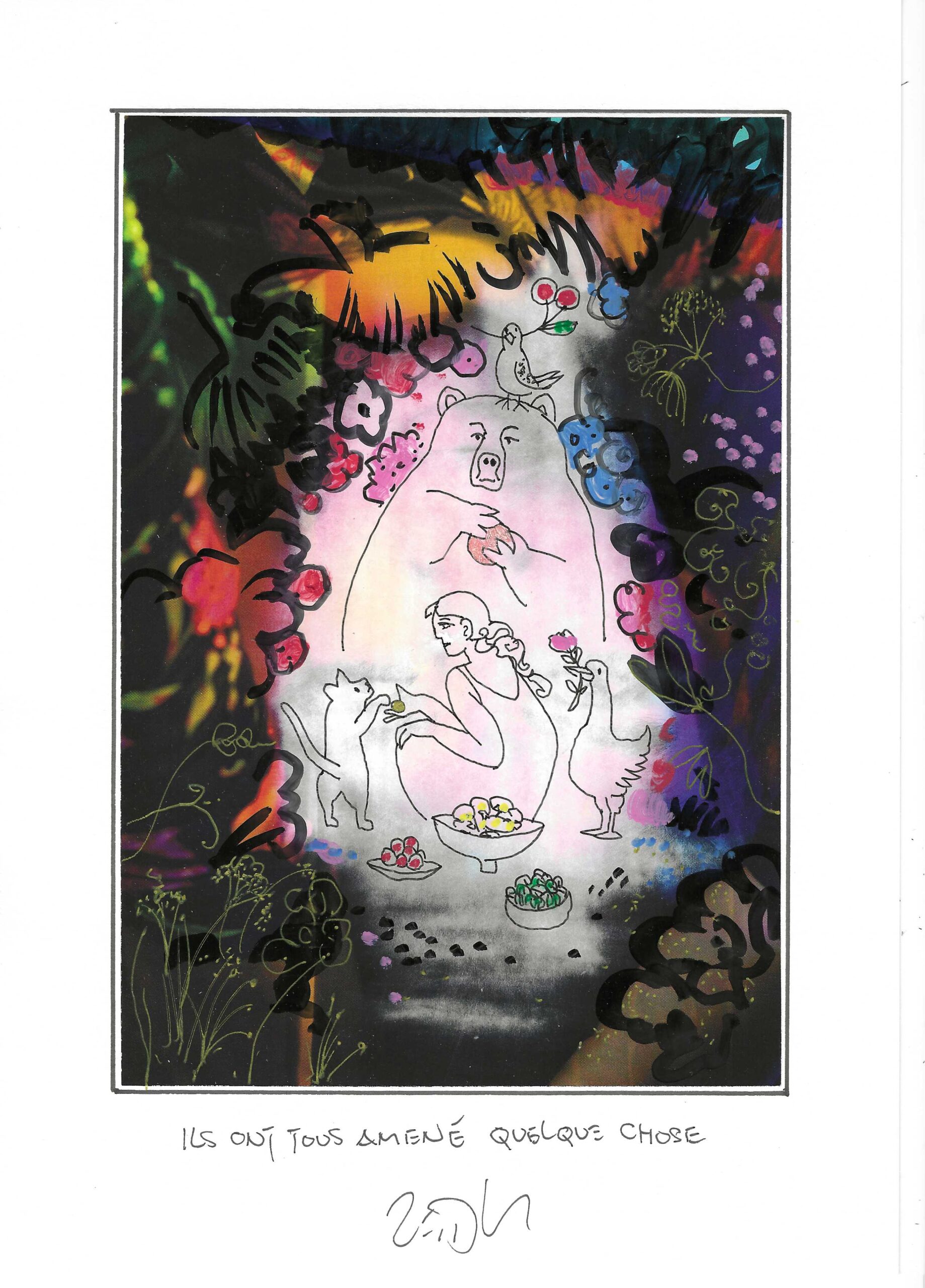 Drawing of the Day – 3661 – Dessin du jour « They all brought something – Ils ont tous amené quelque chose » Mixed Media on Paper – 8 x 12″ (21 x 30 cm) – Technique mixte sur Papier