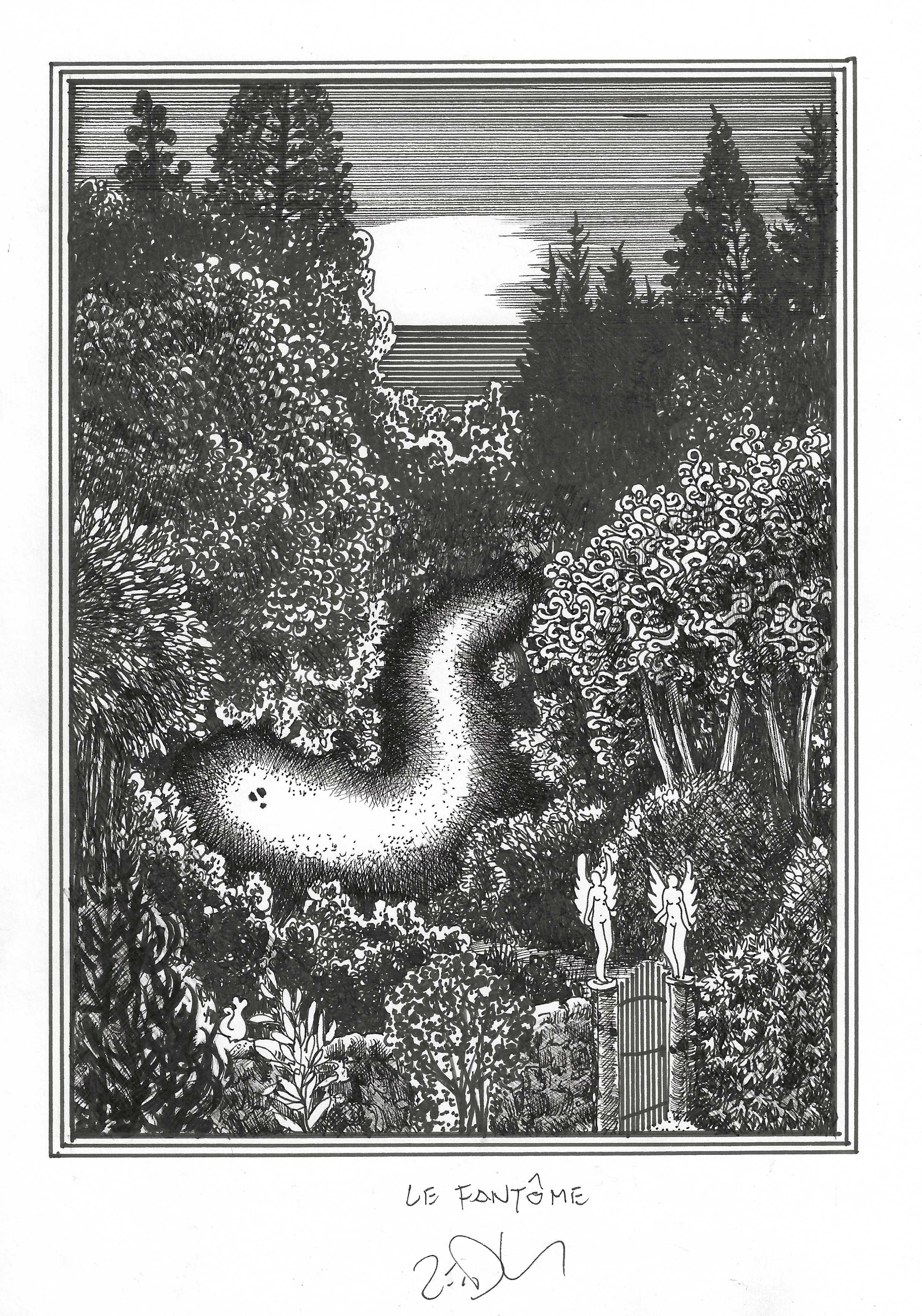 Drawing of the Day – 3007 – Dessin du jour « The ghost – Le fantôme » Ink on Paper – 8 x 12″ (21 x 30 cm) – Encre sur Papier