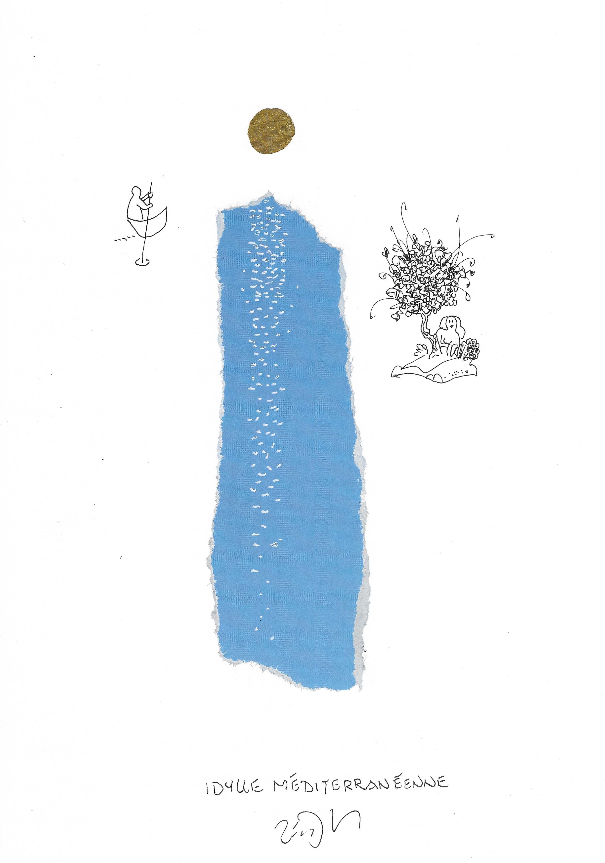Drawing of the Day – 3009 – Dessin du jour « Mediterranean Idyll – Idylle Méditerranéenne » Mixed Media on Paper – 8 x 12″ (21 x 30 cm) – Technique mixte sur Papier