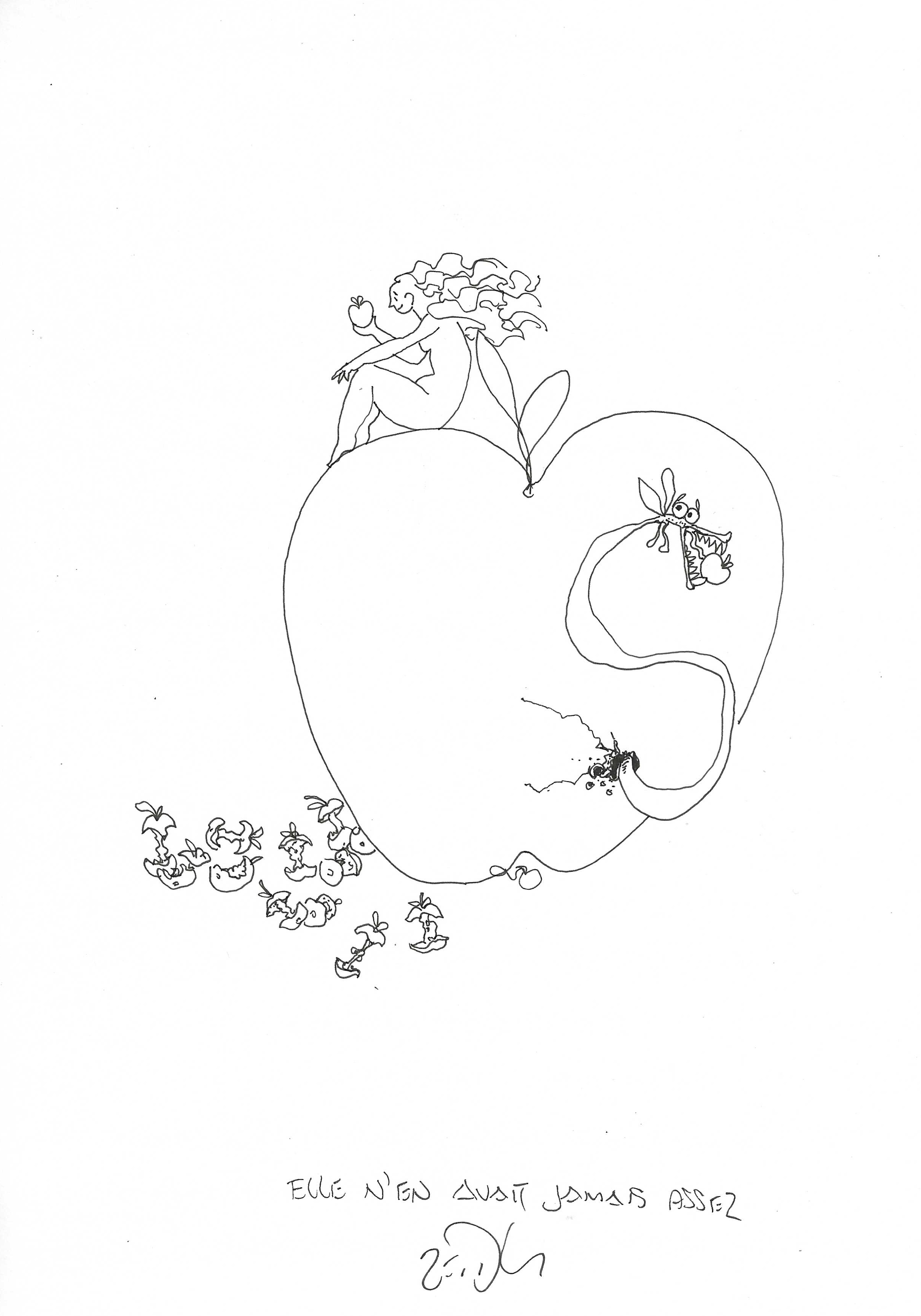 Drawing of the Day – 3011 – Dessin du jour « She just couldn’t get enough – Elle n’en avait jamais assez » Ink on Paper – 8 x 12″ (21 x 30 cm) – Encre sur Papier