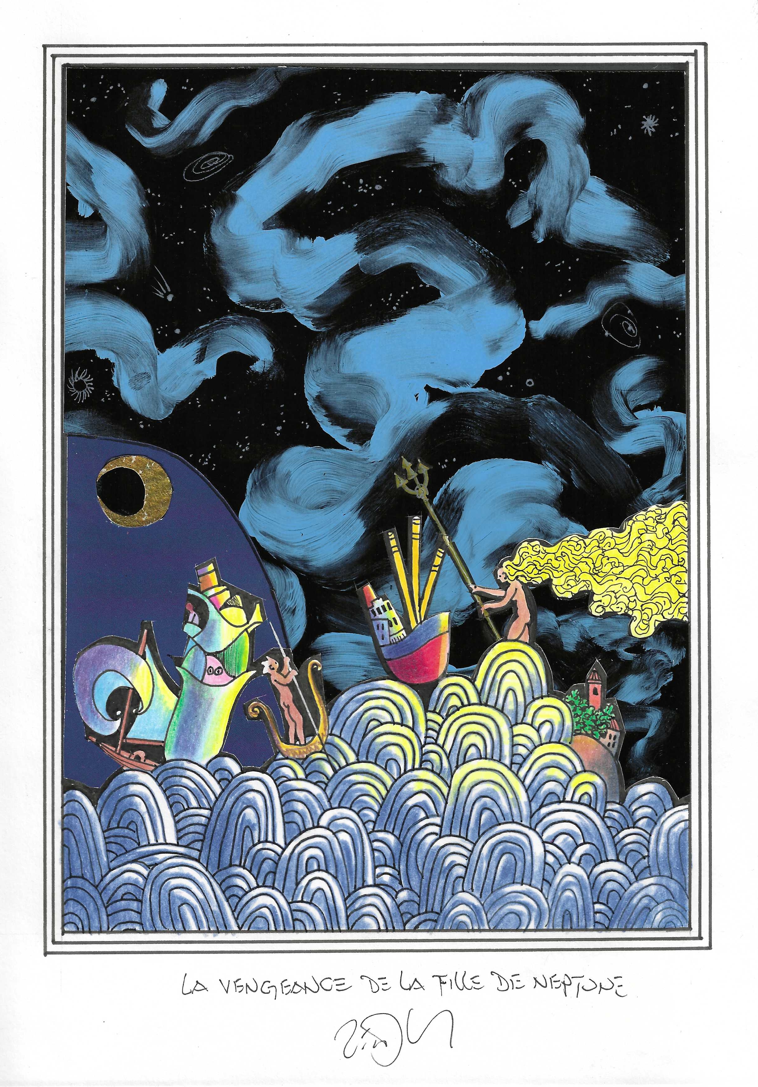 Drawing of the Day – 3012 – Dessin du jour « Neptune’s daughter has her revenge – La vengeance de la fille de Neptune » Mixed Media on Paper – 8 x 12″ (21 x 30 cm) – Technique mixte sur Papier