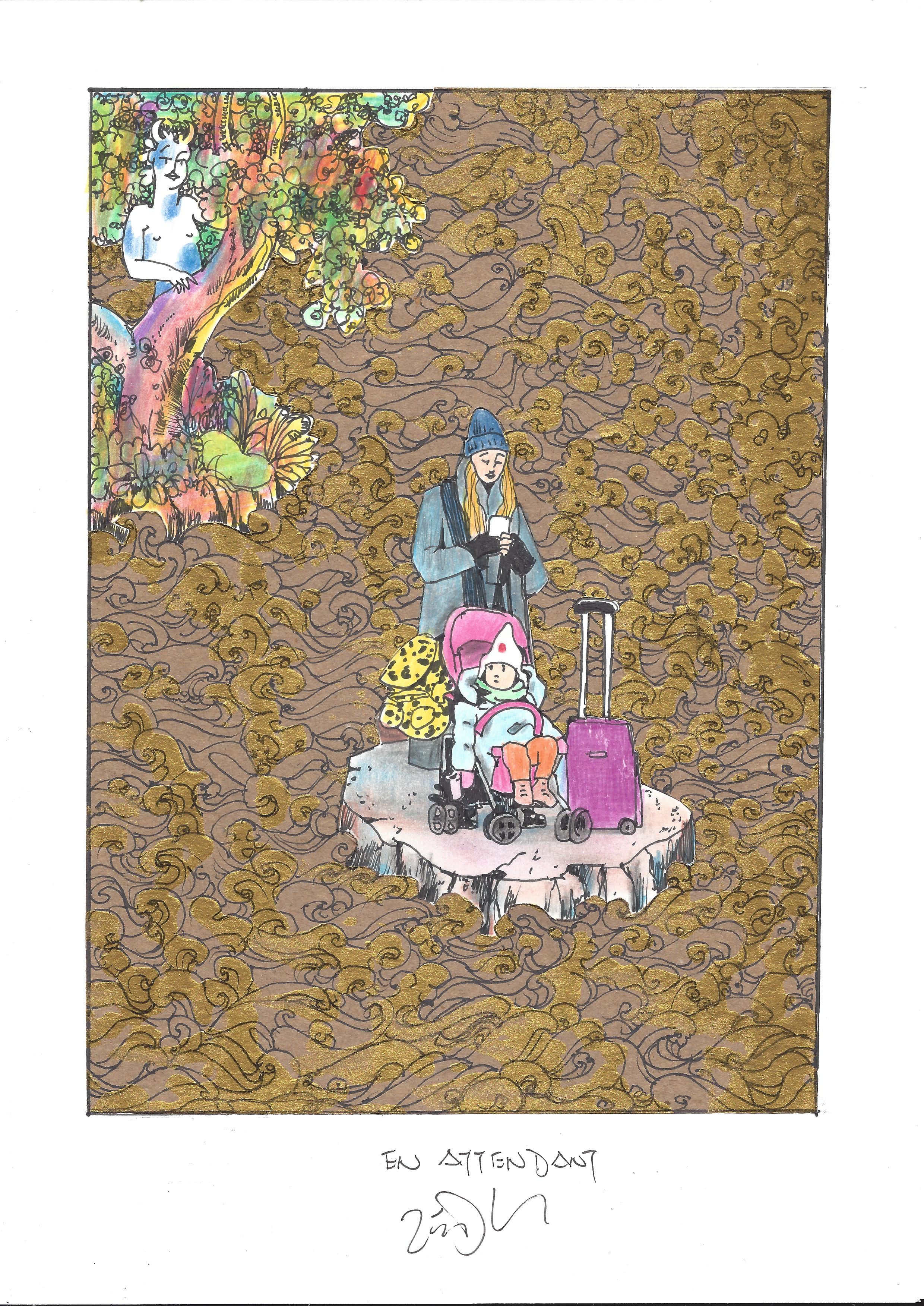 Drawing of the Day – 2978 – Dessin du jour « Waiting – En attendant » Mixed Media on Paper – 8 x 12″ (21 x 30 cm) – Technique mixte sur Papier