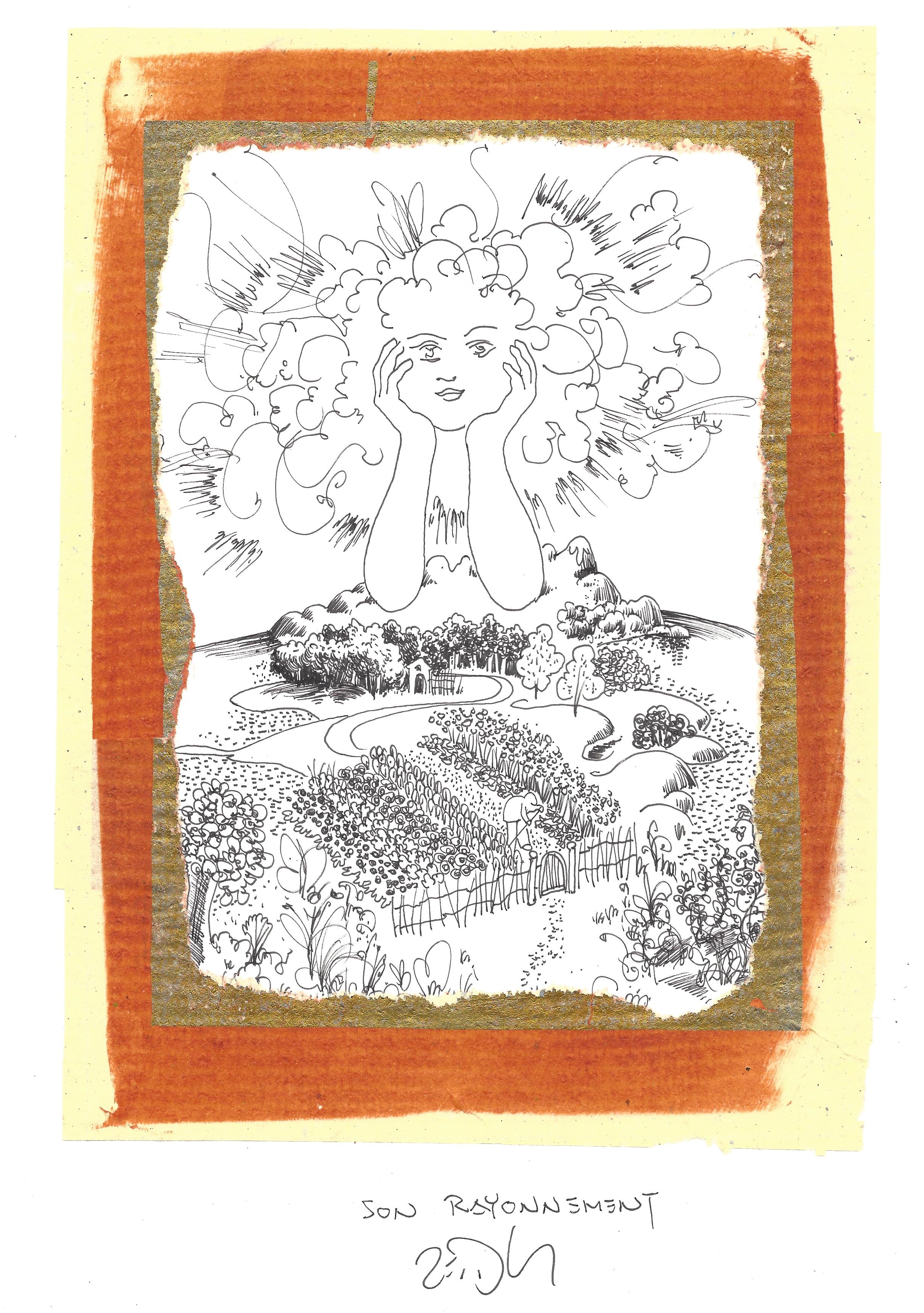 Drawing of the Day – 2981 – Dessin du jour « Her radiance – Son rayonnement » Mixed Media on Paper – 8 x 12″ (21 x 30 cm) – Technique mixte sur Papier