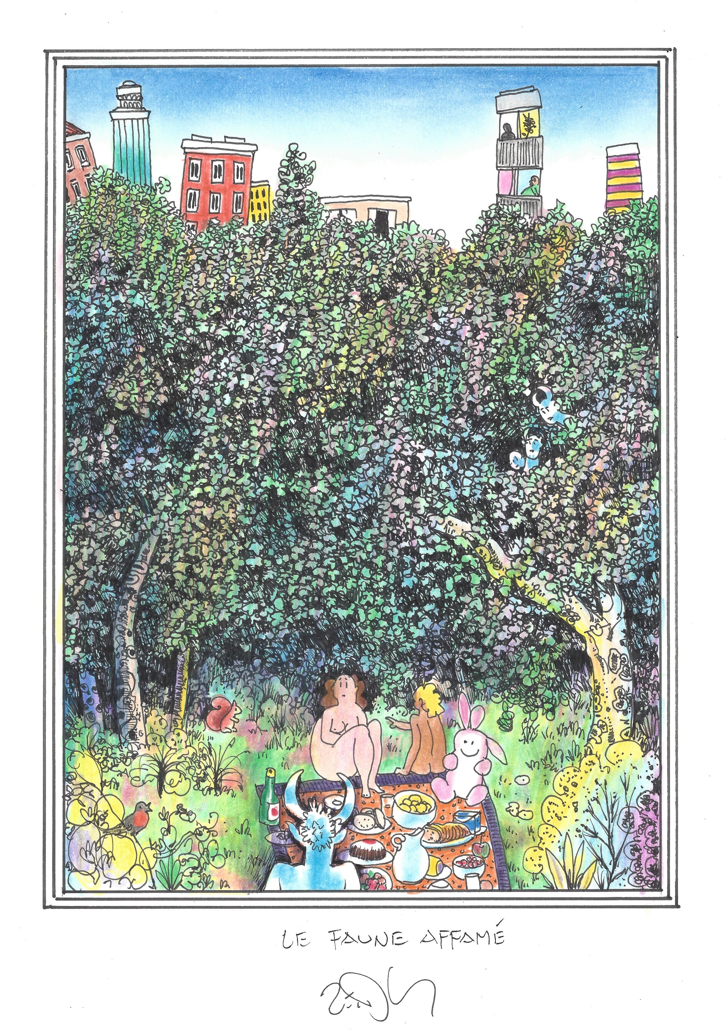 Drawing of the Day – 2985 – Dessin du jour « The hungry faun – Le faune affamé » Ink & colour on Paper – 8 x 12″ (21 x 30 cm) – Encre & couleurs sur Papier