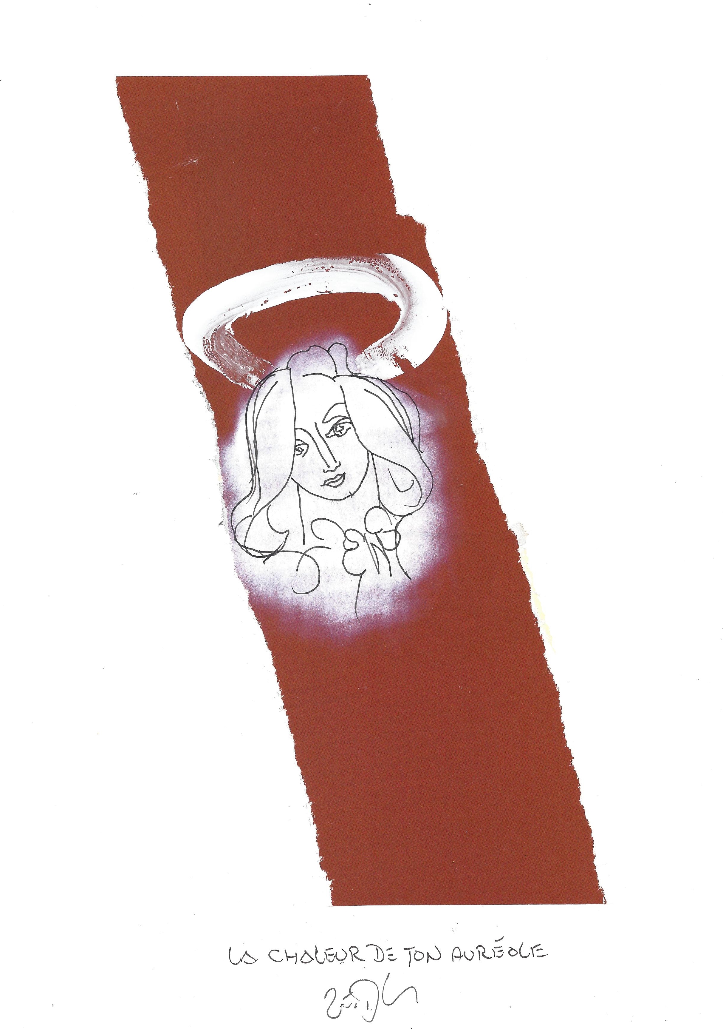Drawing of the Day – 2969 – Dessin du jour « The heat of your halo – La chaleur de ton auréole » Mixed Media on Paper – 8 x 12″ (21 x 30 cm) – Technique mixte sur Papier