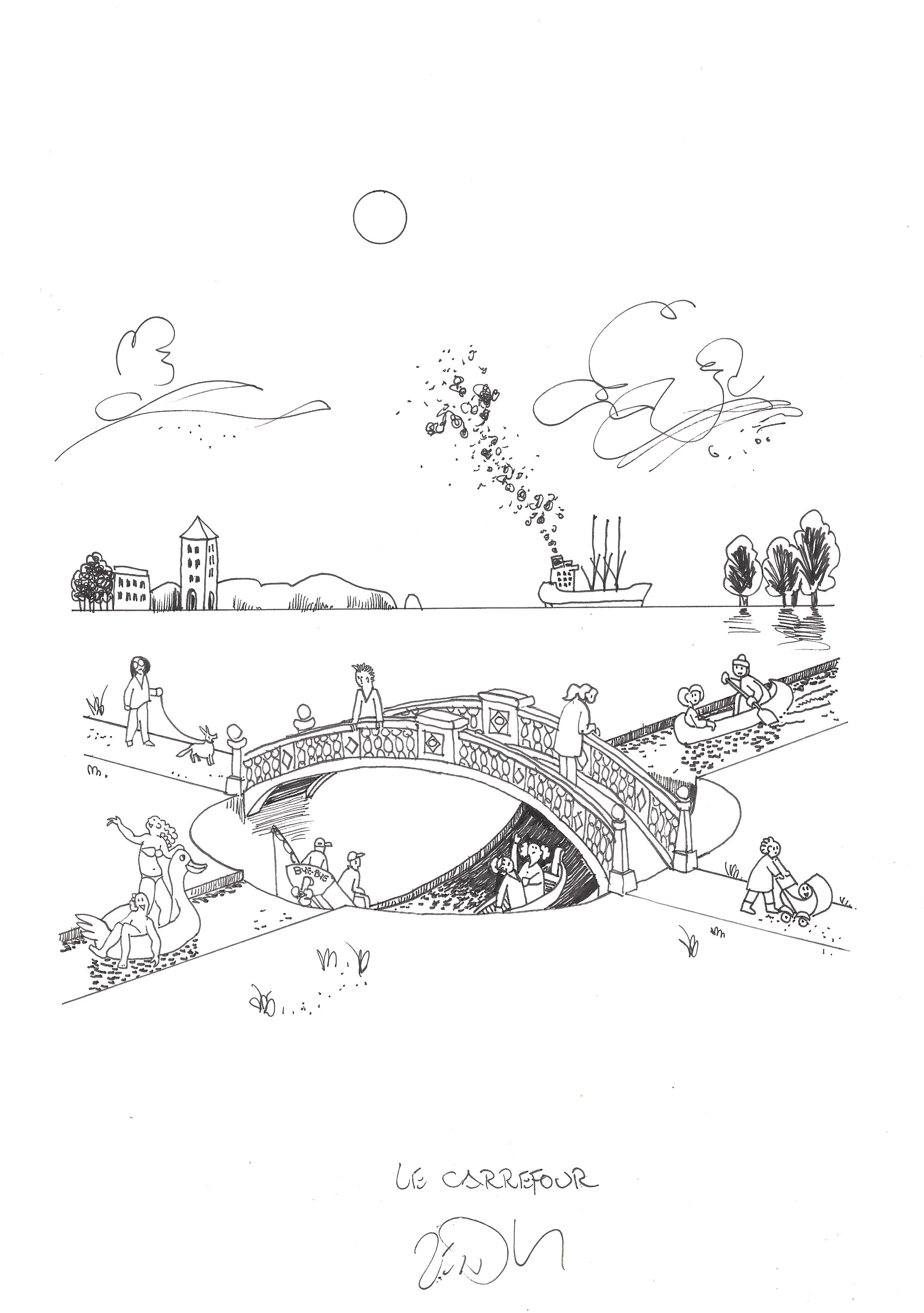 Drawing of the Day – 2971 – Dessin du jour « The intersection – Le carrefour » Ink on Paper – 8 x 12″ (21 x 30 cm) – Encre sur Papier