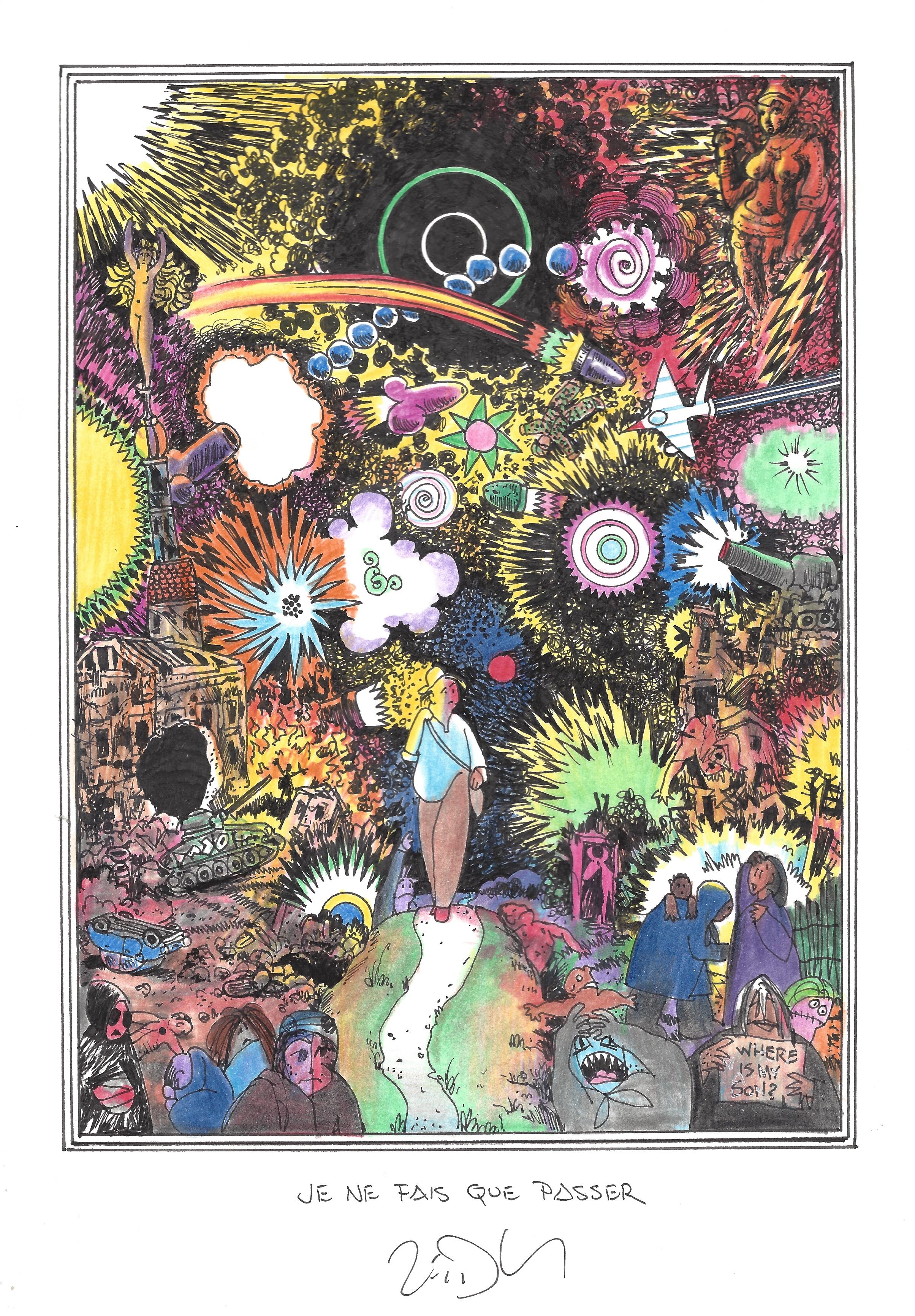 Drawing of the Day – 2828 – Dessin du jour « Just passing through – Je ne fais que passer » Ink & colour on Paper – 8 x 12″ (21 x 30 cm) – Encre & couleurs sur Papier