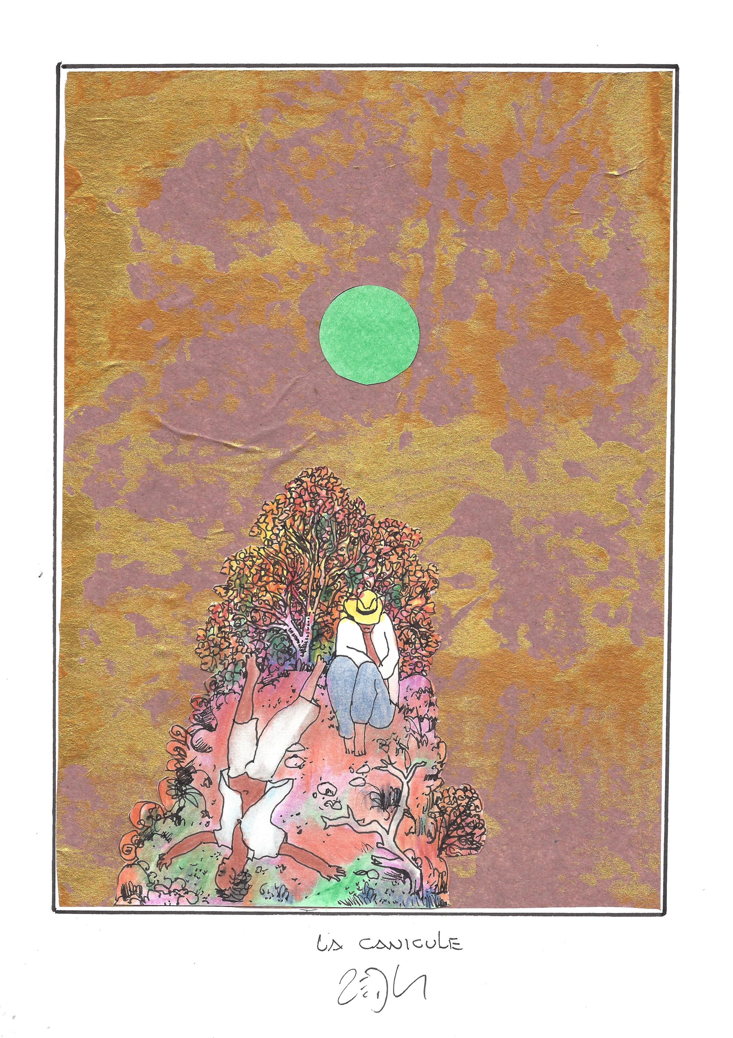 Drawing of the Day – 2830 – Dessin du jour « The heat – La canicule » Mixed Media on Paper – 8 x 12″ (21 x 30 cm) – Technique mixte sur Papier