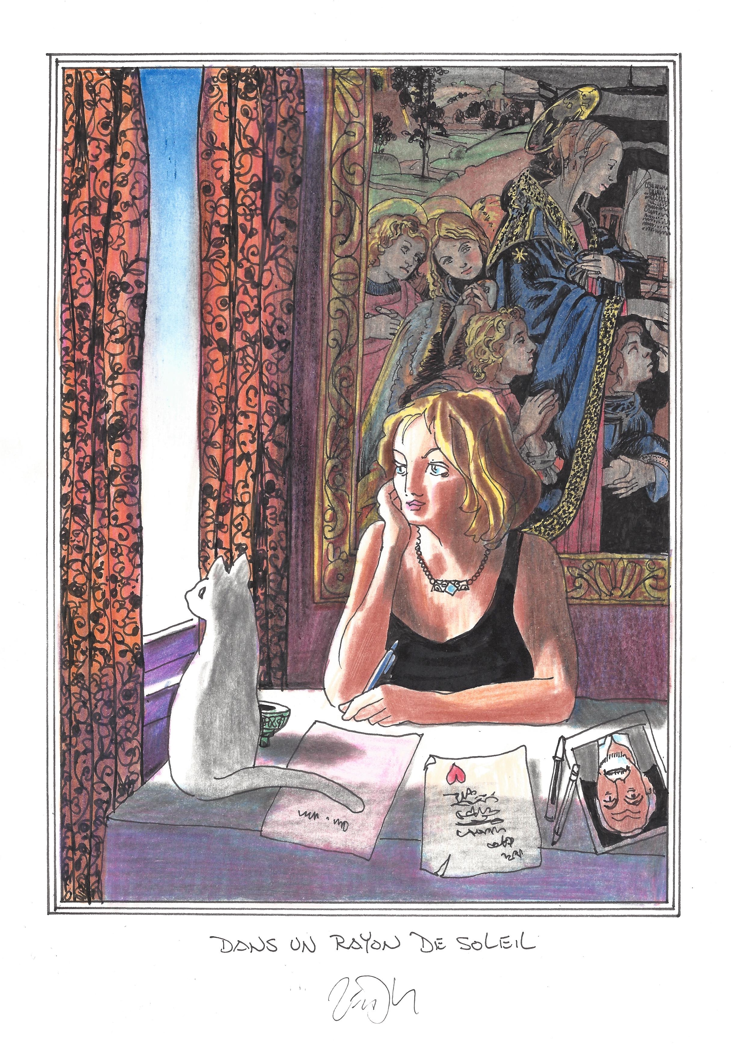 Drawing of the Day – 2823 – Dessin du jour « A moment in the sun – Dans un rayon de soleil » Ink & colour on Paper – 8 x 12″ (21 x 30 cm) – Encre & couleurs sur Papier