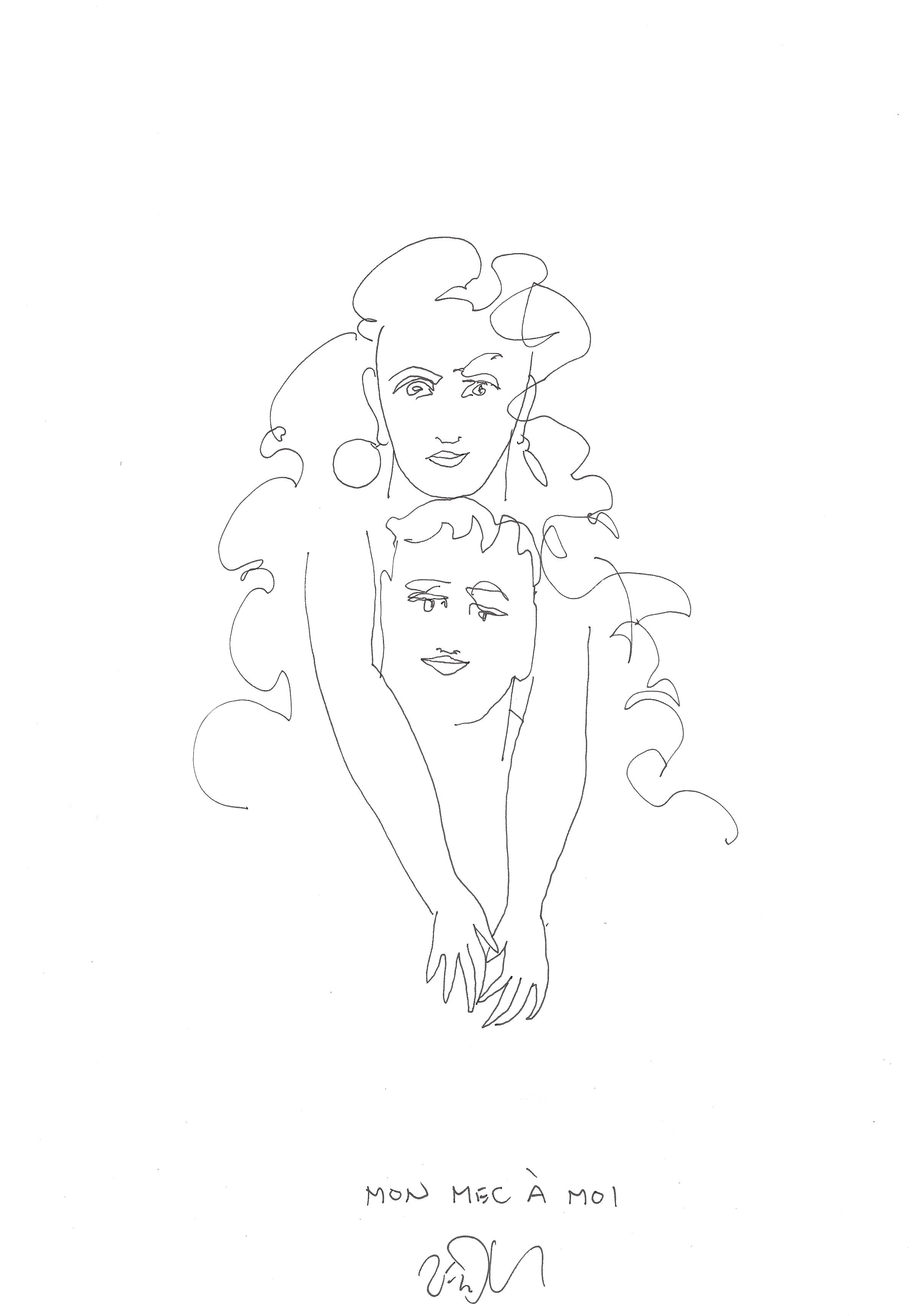 Drawing of the Day – 2824 – Dessin du jour « He’s all mine – Mon mec à moi » Ink on Paper – 8 x 12″ (21 x 30 cm) – Encre sur Papier