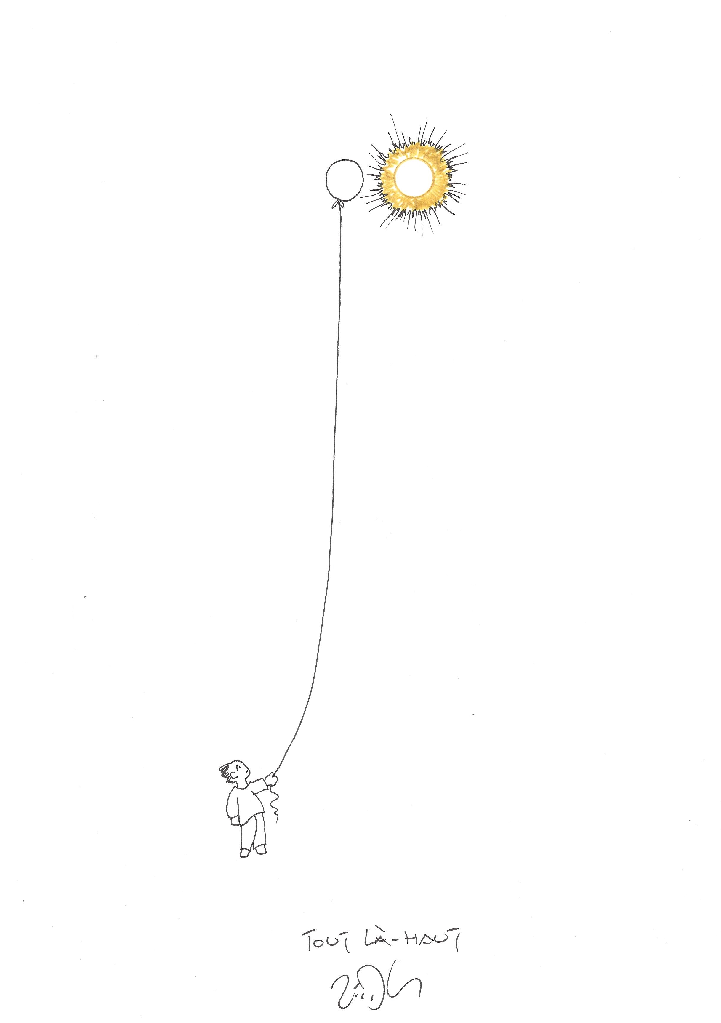 Drawing of the Day – 2826 – Dessin du jour « Up there – Tout là-haut » Ink on Paper – 8 x 12″ (21 x 30 cm) – Encre sur Papier