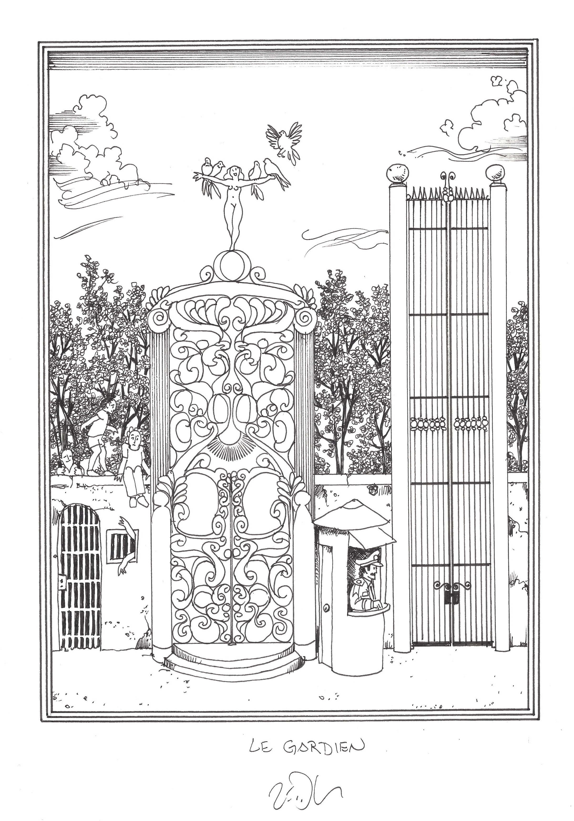 Drawing of the Day – 2780 – Dessin du jour « The gatekeeper – Le gardien » Ink on Paper – 8 x 12″ (21 x 30 cm) – Encre sur Papier