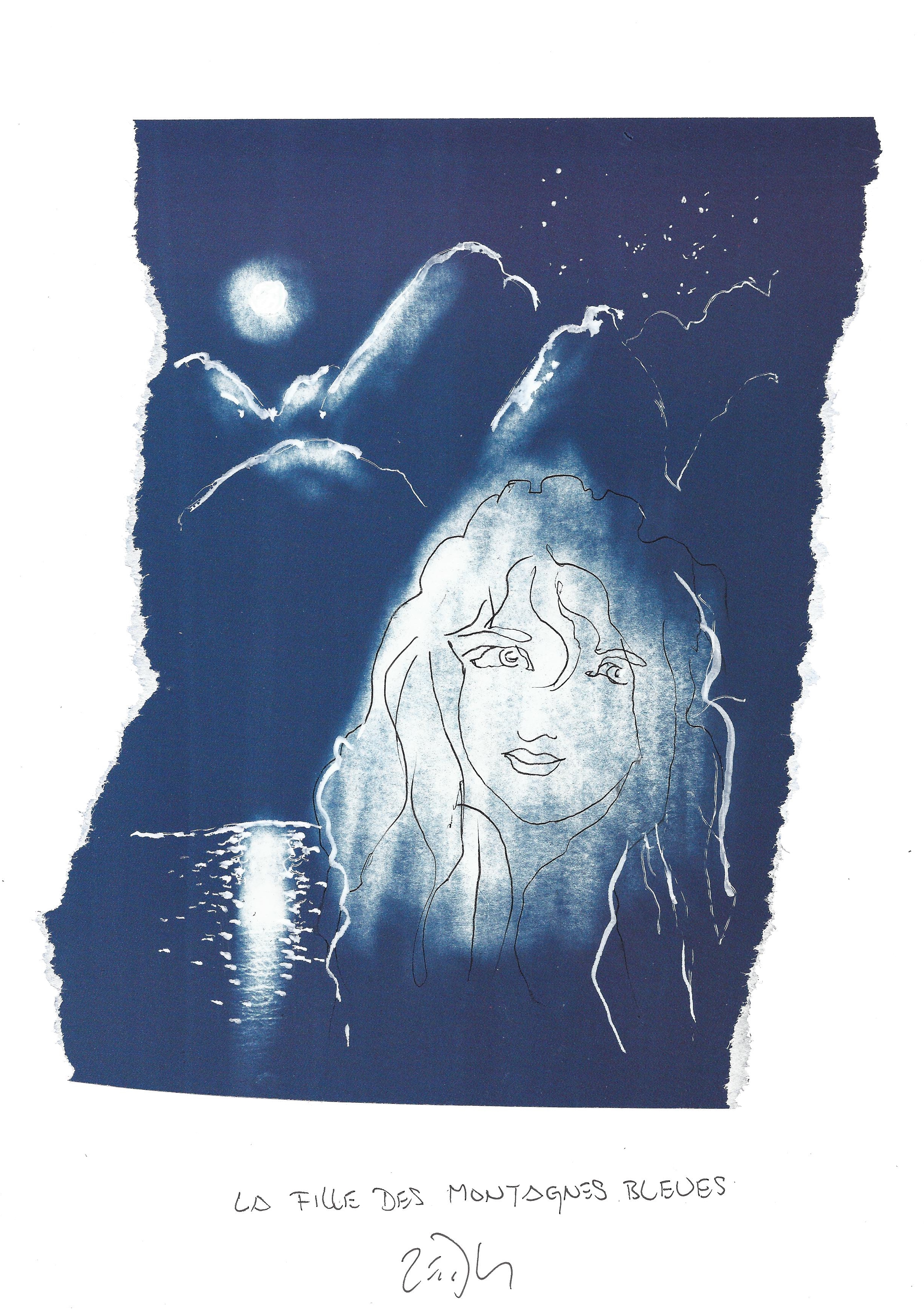 Drawing of the Day – 2782 – Dessin du jour « Girl from the Blue Mountains – La fille des Montagnes Bleues » Mixed Media on Paper – 8 x 12″ (21 x 30 cm) – Technique mixte sur Papier