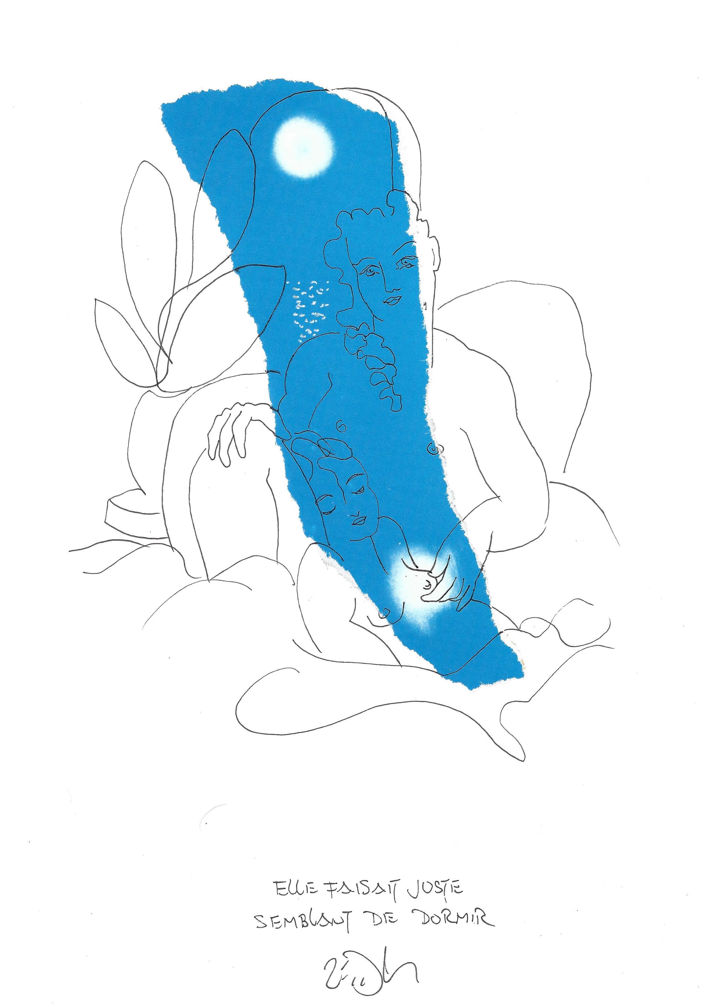 Drawing of the Day – 2785 – Dessin du jour « She was only pretending to be asleep – Elle faisait juste semblant de dormir » Mixed Media on Paper – 8 x 12″ (21 x 30 cm) – Technique mixte sur Papier