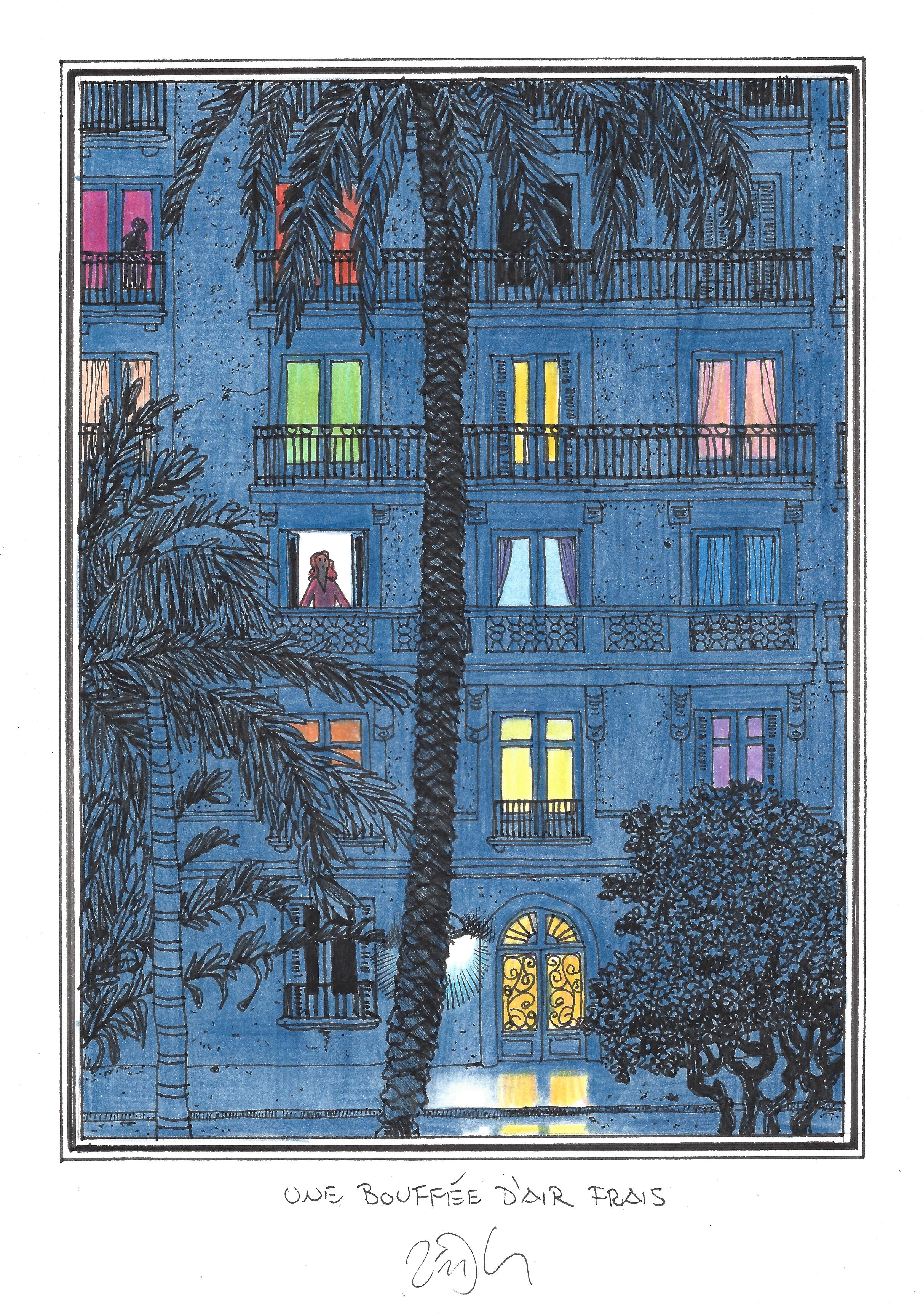 Drawing of the Day – 2787 – Dessin du jour « A breath of fresh air – Une bouffée d’air frais » Ink & colour on Paper – 8 x 12″ (21 x 30 cm) – Encre & couleurs sur Papier