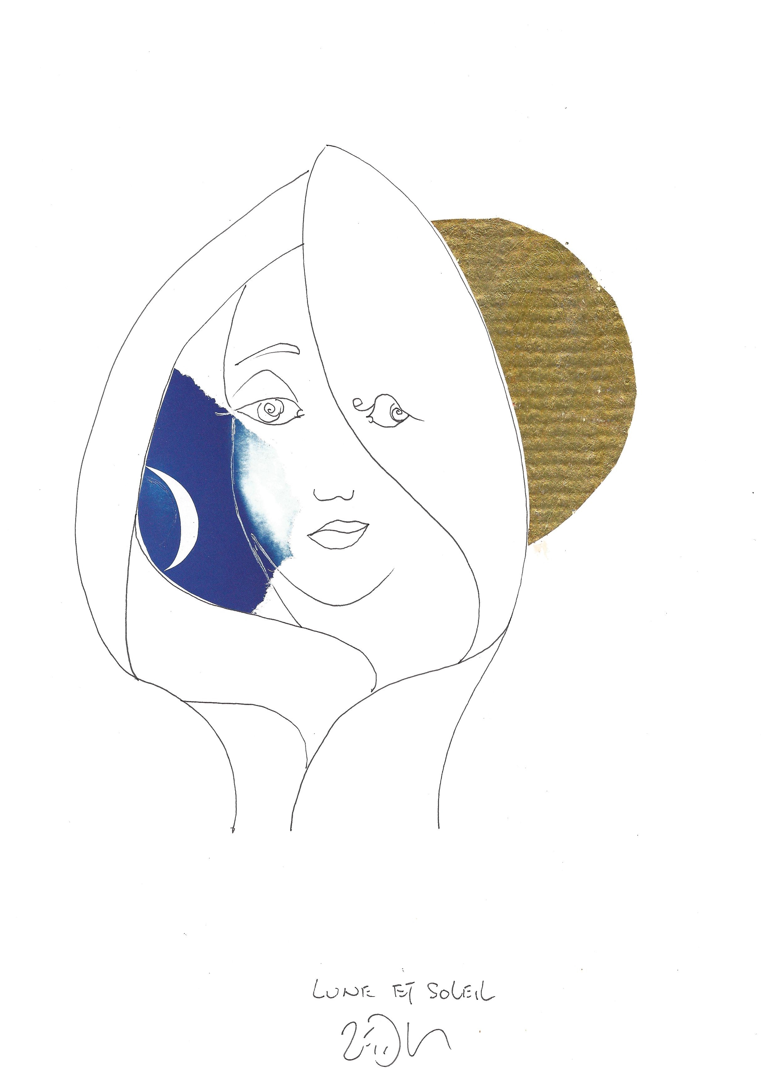 Drawing of the Day – 2760 – Dessin du jour « Sun and moon – Lune et soleil » Mixed Media on Paper – 8 x 12″ (21 x 30 cm) – Technique mixte sur Papier