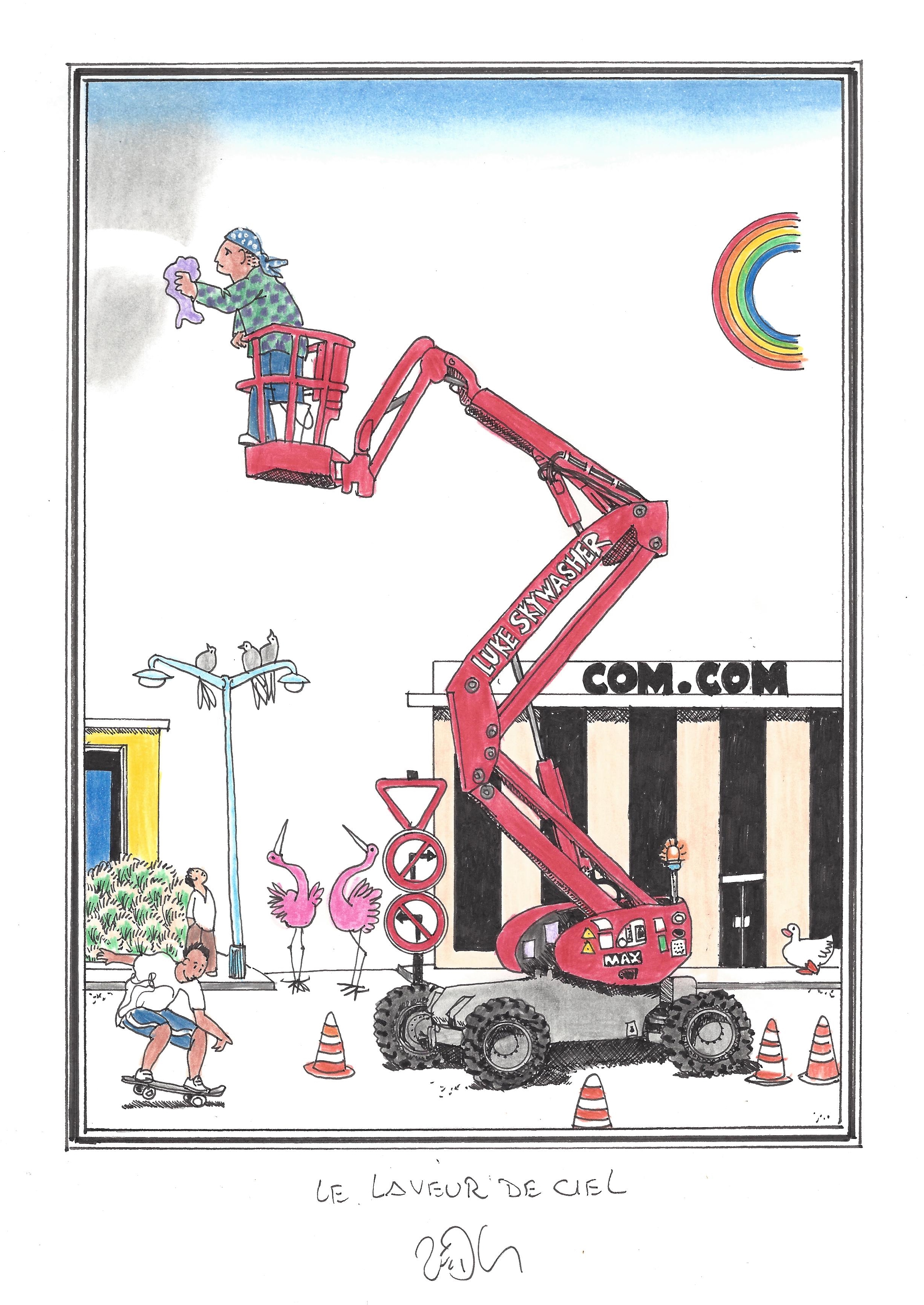 Drawing of the Day – 2765 – Dessin du jour « Luke Skywasher – Le laveur de ciel » Ink & colour on Paper – 8 x 12″ (21 x 30 cm) – Encre & couleurs sur Papier