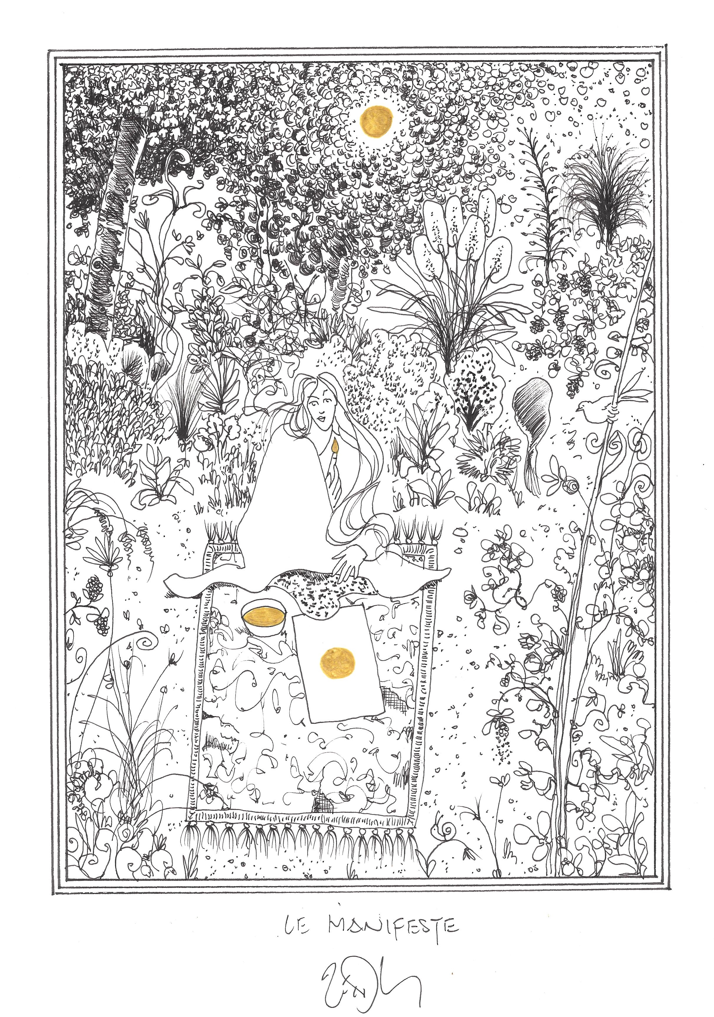 Drawing of the Day – 2766 – Dessin du jour « Manifesto – Le manifeste » Ink & colour on Paper – 8 x 12″ (21 x 30 cm) – Encre & couleurs sur Papier