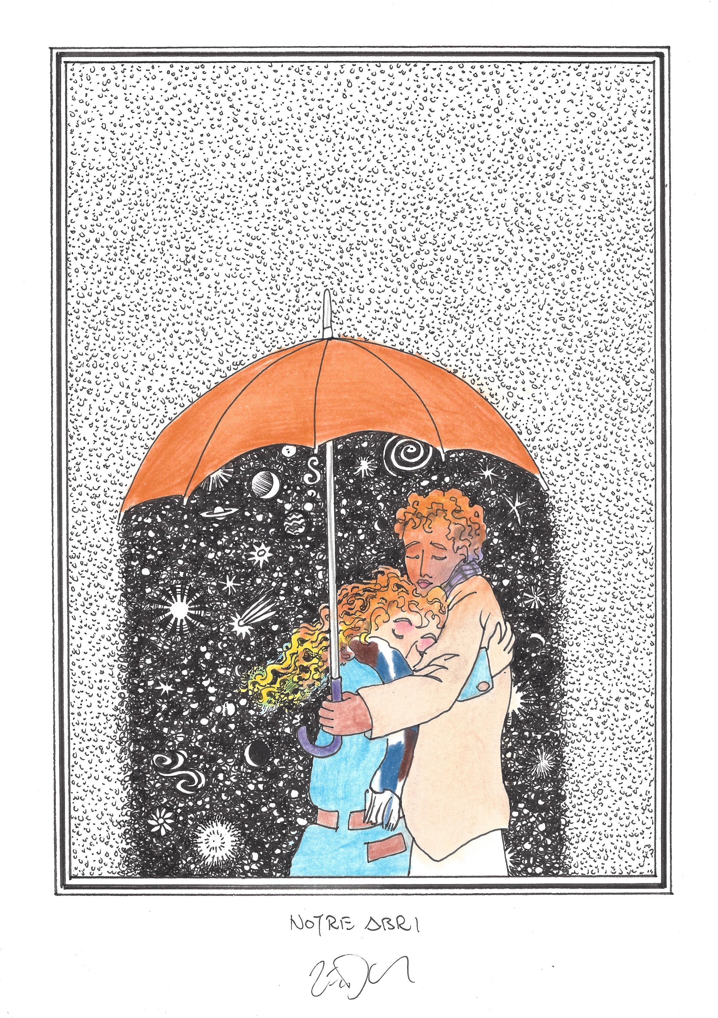 Drawing of the Day – 2750 – Dessin du jour « Our shelter – Notre abri » Ink & colour on Paper – 8 x 12″ (21 x 30 cm) – Encre & couleurs sur Papier
