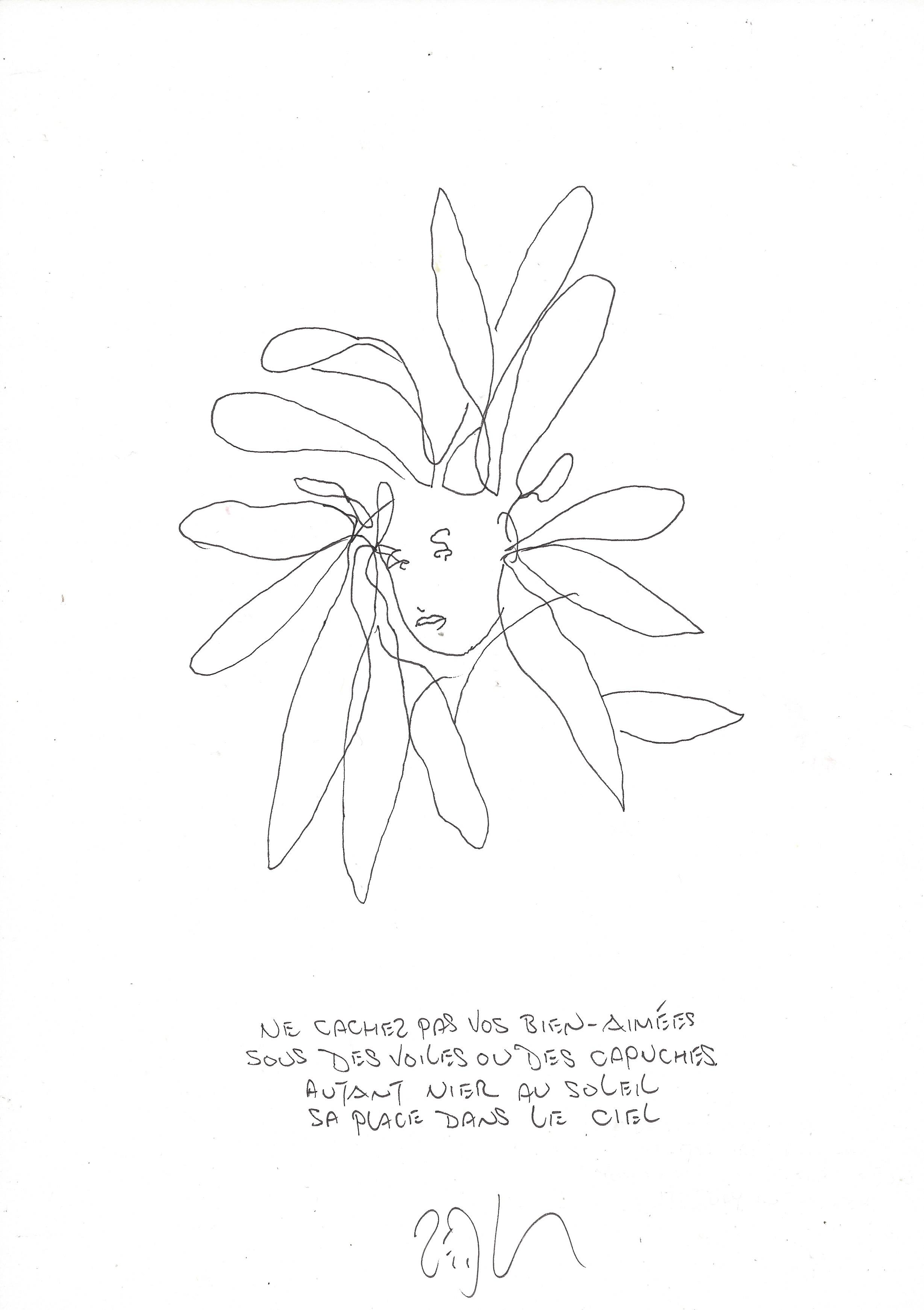 « Do not cover your beloved with veils and hoods, you might as well deny the sun it’s day in the sky – Ne cachez pas vos bien-aimées sous des voiles ou des capuches, autant nier au soleil sa place dans le ciel »