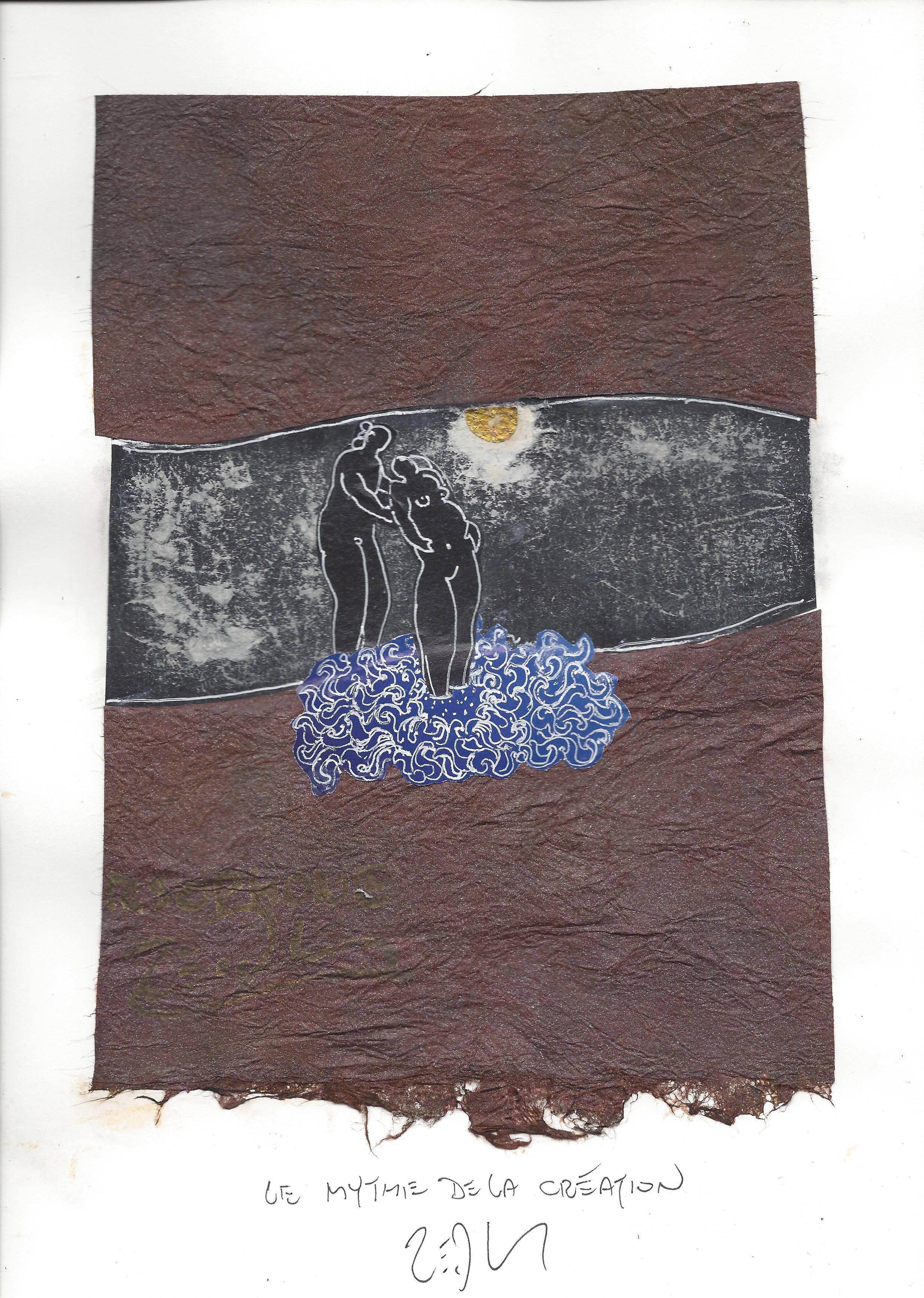 Drawing of the Day – 1028 – Dessin du jour « Creation myth – Le mythe de la création » Mixed Media on Paper 8×12″ (21x30cm) Technique mixte sur Papier Drawing of the Day available for CDN$ 150 (125€) Dessin du jour disponible au prix de 125€ (150 $CAD)