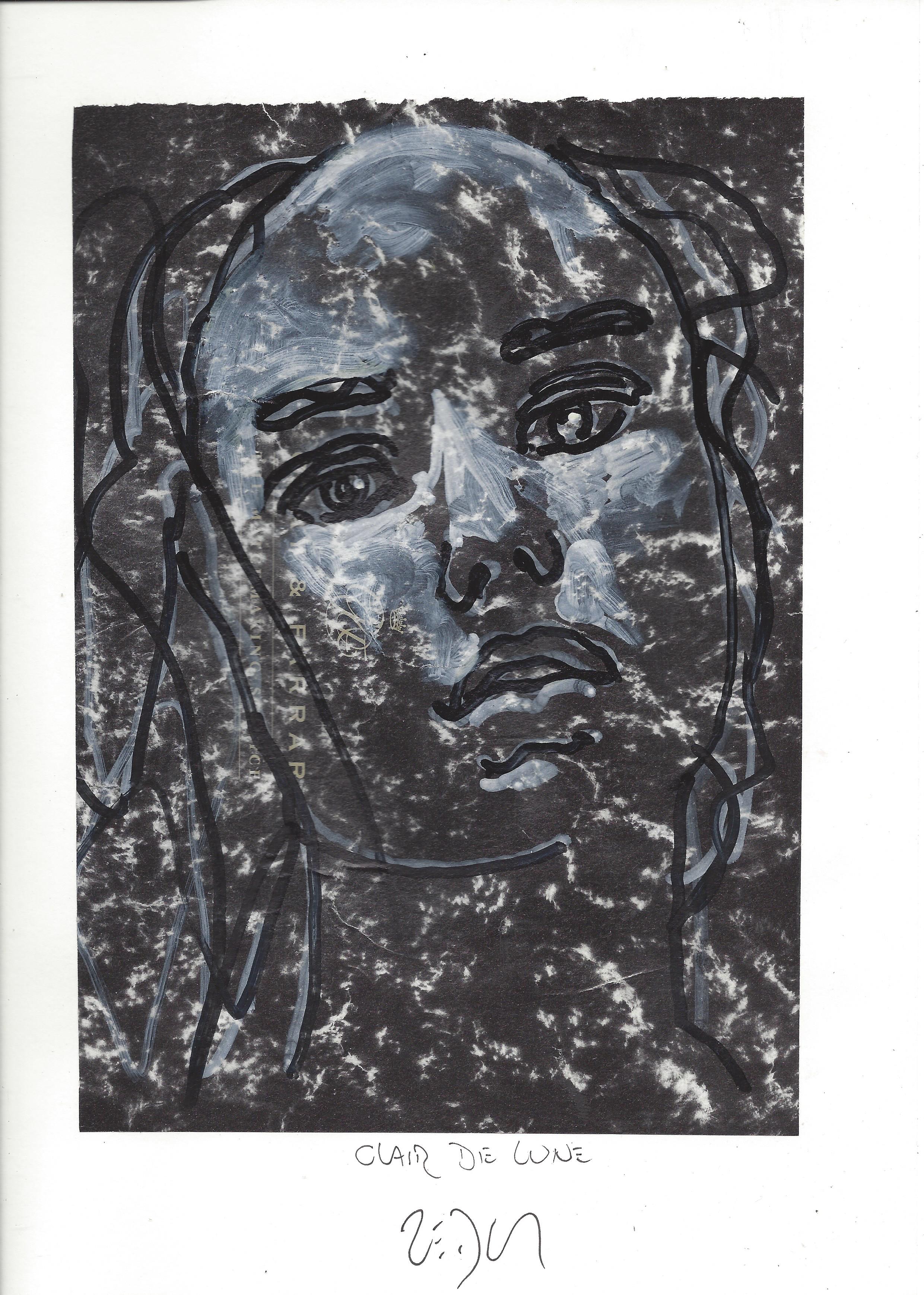 Drawing of the Day – 1051 – Dessin du jour « Moonlight – Clair de lune » Mixed Media on Paper 8 x 12″ (21 x 30 cm) Technique mixte sur Papier Drawing of the Day available for CDN$ 150 (125€) Dessin du jour disponible au prix de 125€ (150 $CAD)