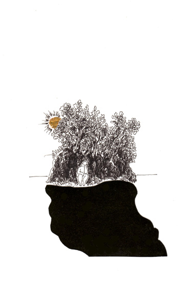 Ink and collage on Paper 7.5×11″ (18x28cm) Encre et collage sur Papier