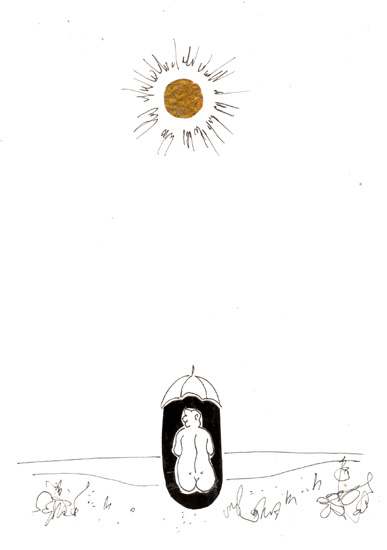 Drawing of the Day – 0216 – Dessin du jour “out of the sun – À l’abri du soleil” Mixed Media on Paper 7.5×11″ (18x28cm) Technique mixte sur Papier Drawing of the Day available for CDN$ 150 (125€) Dessin du jour disponible au prix de 125€ (150 $CAD)