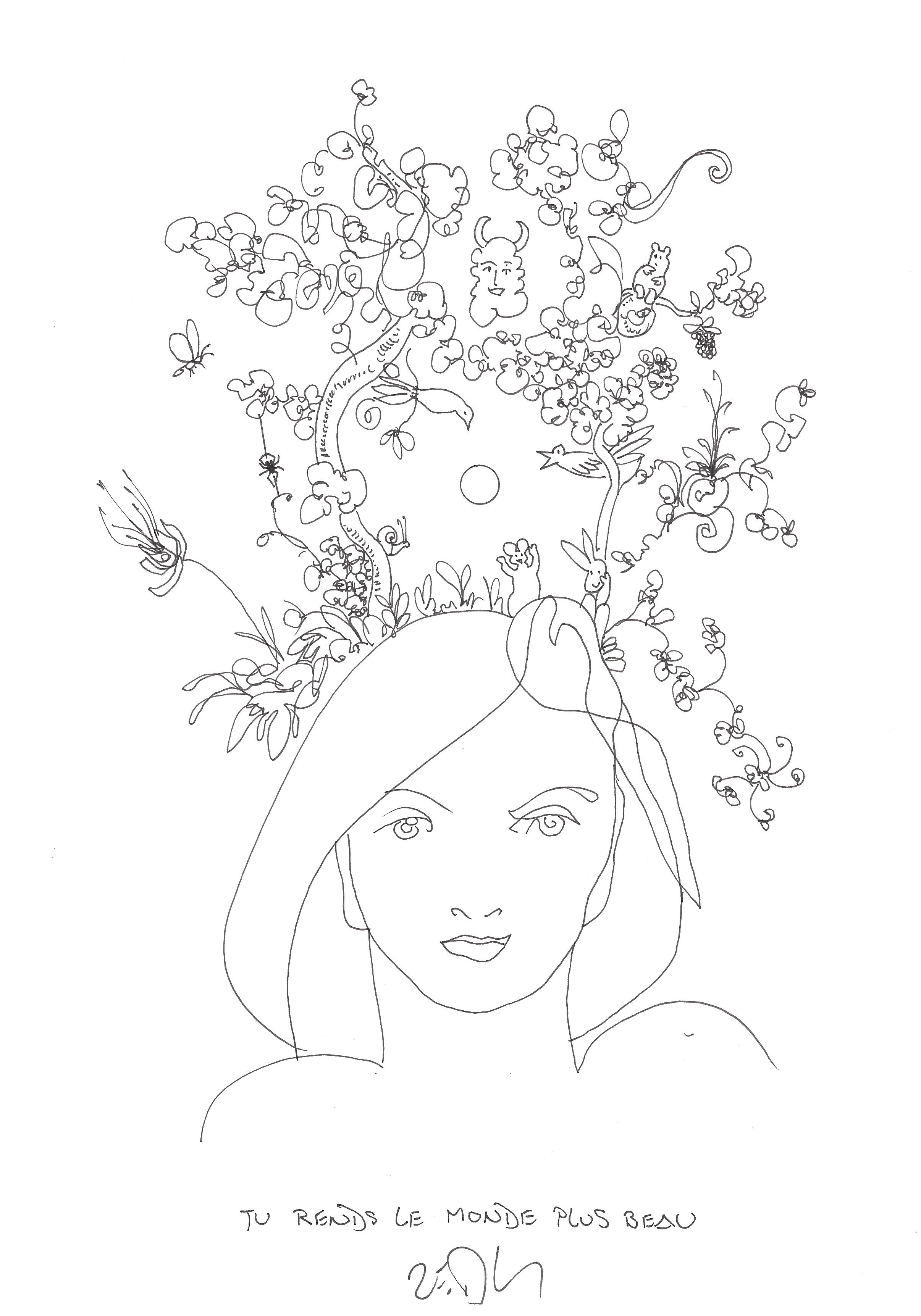 Drawing of the Day – 2881 – Dessin du jour « You make the world a lovelier place – Tu rends le monde plus beau » Ink on Paper – 8 x 12″ (21 x 30 cm) – Encre sur Papier