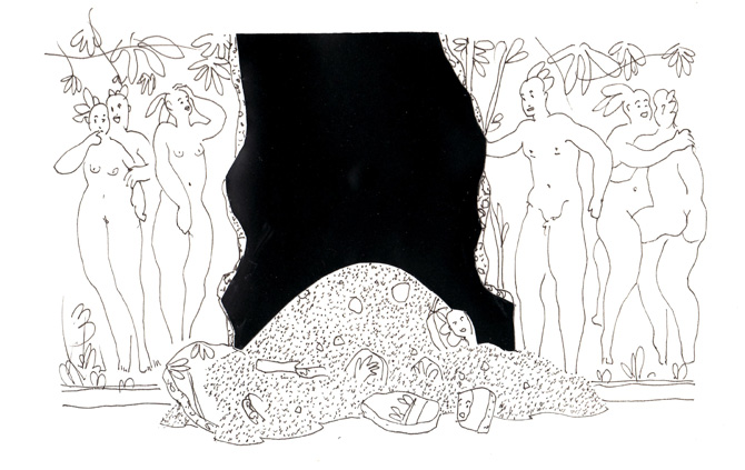 Ink and collage on Paper 7.5×11″ (18x28cm) Encre et collage sur Papier