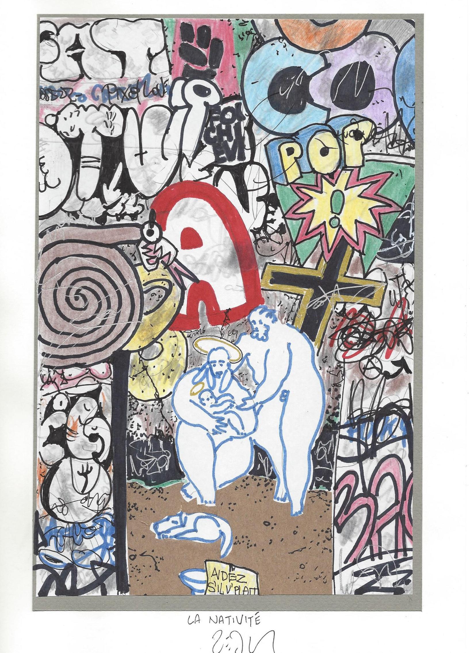 Drawing of the Day – 0801 – Dessin du jour « Nativity – La nativité » Ink on Paper 8×12″ (21x30cm) Encre sur Papier Drawing of the Day available for CDN$ 150 (125€) Dessin du jour disponible au prix de 125€ (150 $CAD)