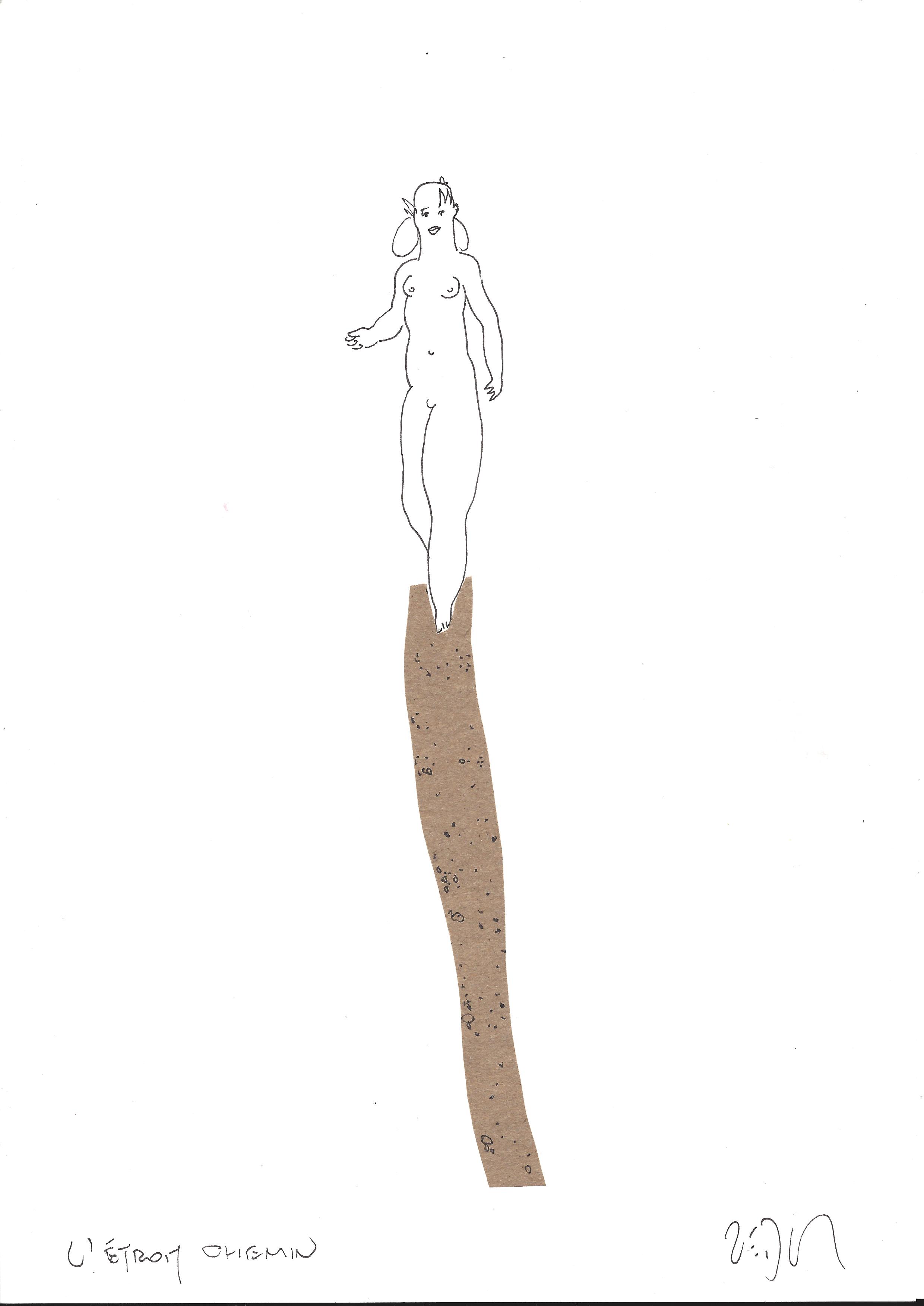 Drawing of the Day – 0898 – Dessin du jour « On the narrow path – L’étroit chemin » Mixed Media on Paper 8×12″ (21x30cm) Technique mixte sur Papier Drawing of the Day available for CDN$ 150 (125€) Dessin du jour disponible au prix de 125€ (150 $CAD)