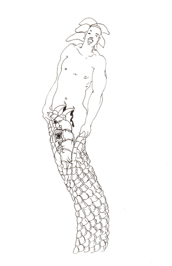 Woao! That looks somewhat scary, even though I I’m usually not afraid of snakes. And it also looks painful with those fangs scraping along the man’s stomach. But birth is supposed to cause pain, even to the individual being born. As usual, very well executed – and some imagination you have, Frank. Smiles