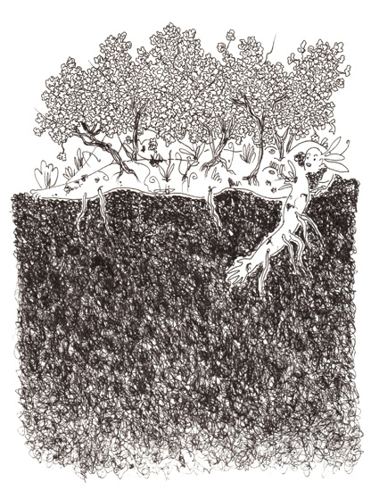 Drawing of the Day – 0094 – Dessin du jour “The good earth – Une terre riche” Ink on Paper 7.5×11″ (18x28cm) Encre sur Papier SOLD