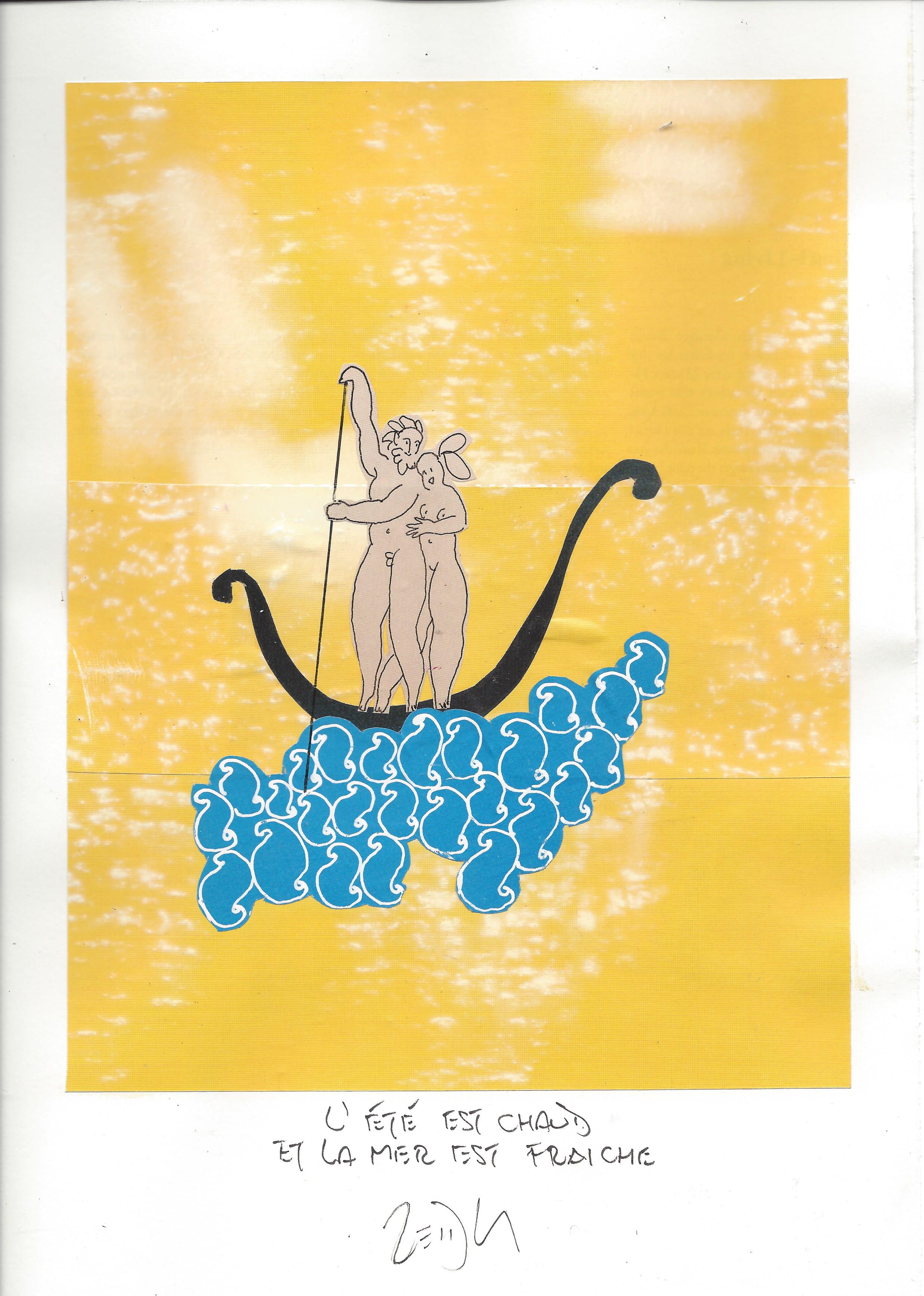 Drawing of the Day – 0948 – Dessin du jour « The summer is hot and the sea is fresh – L’été est chaud et la mer est fraîche » Mixed Media on Paper 8×12″ (21x30cm) Technique mixte sur Papier Drawing of the Day available for CDN$ 150 (125€) Dessin du jour disponible au prix de 125€ (150 $CAD)
