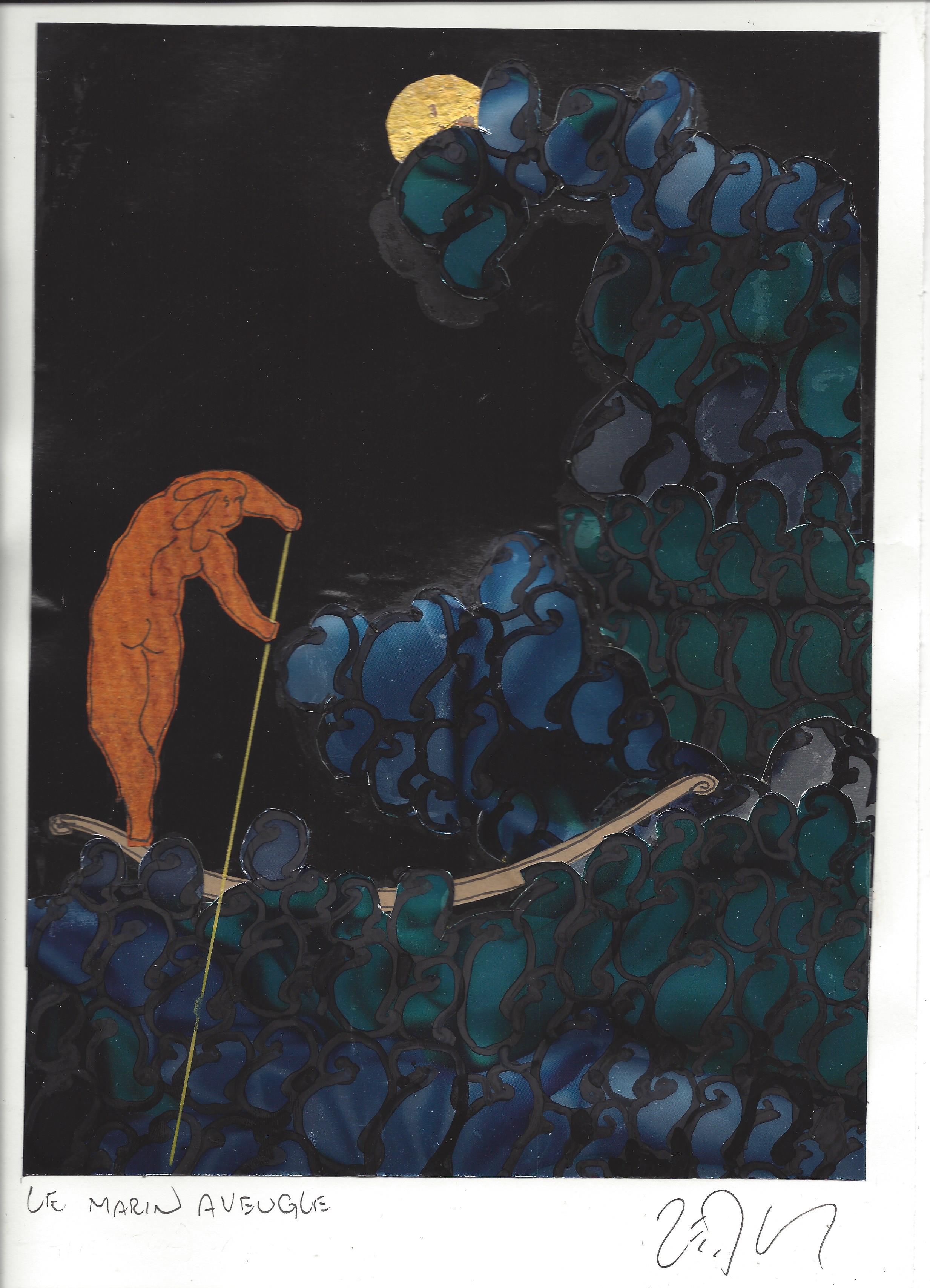 Drawing of the Day – 0973 – Dessin du jour « The blind sailor – Le marin aveugle » Mixed Media on Paper 8×12″ (21x30cm) Technique mixte sur Papier Drawing of the Day available for CDN$ 150 (125€) Dessin du jour disponible au prix de 125€ (150 $CAD)